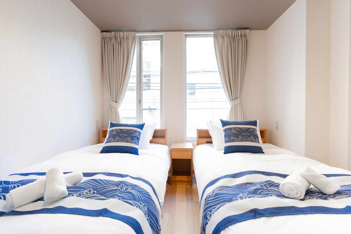 Студия с двумя односпальными кроватями, Dendentown 5 мин, Ниппонбаши
