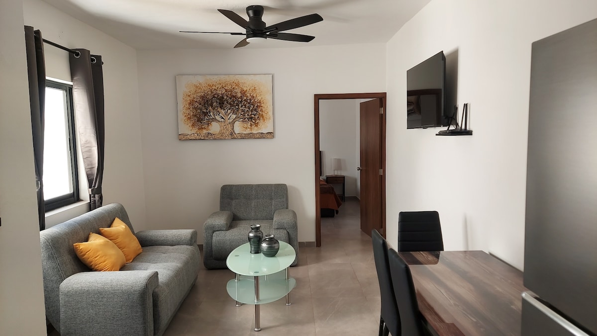 Элегантная квартира в 3 кварталах от исторического центра Текилы, Халиско, очень тихая и безопасная, с Wi-Fi, телевизор, утюг, сушилка, 3 просторные спальни, подходящие для 10 человек, гостиная, столовая, кухня и 2 ванные комнаты с горячей водой. для других есть кафе, открытая для широкой публики, где мы предлагаем обширное меню напитков и блюд. Рядом с домом есть одно парковочное место.