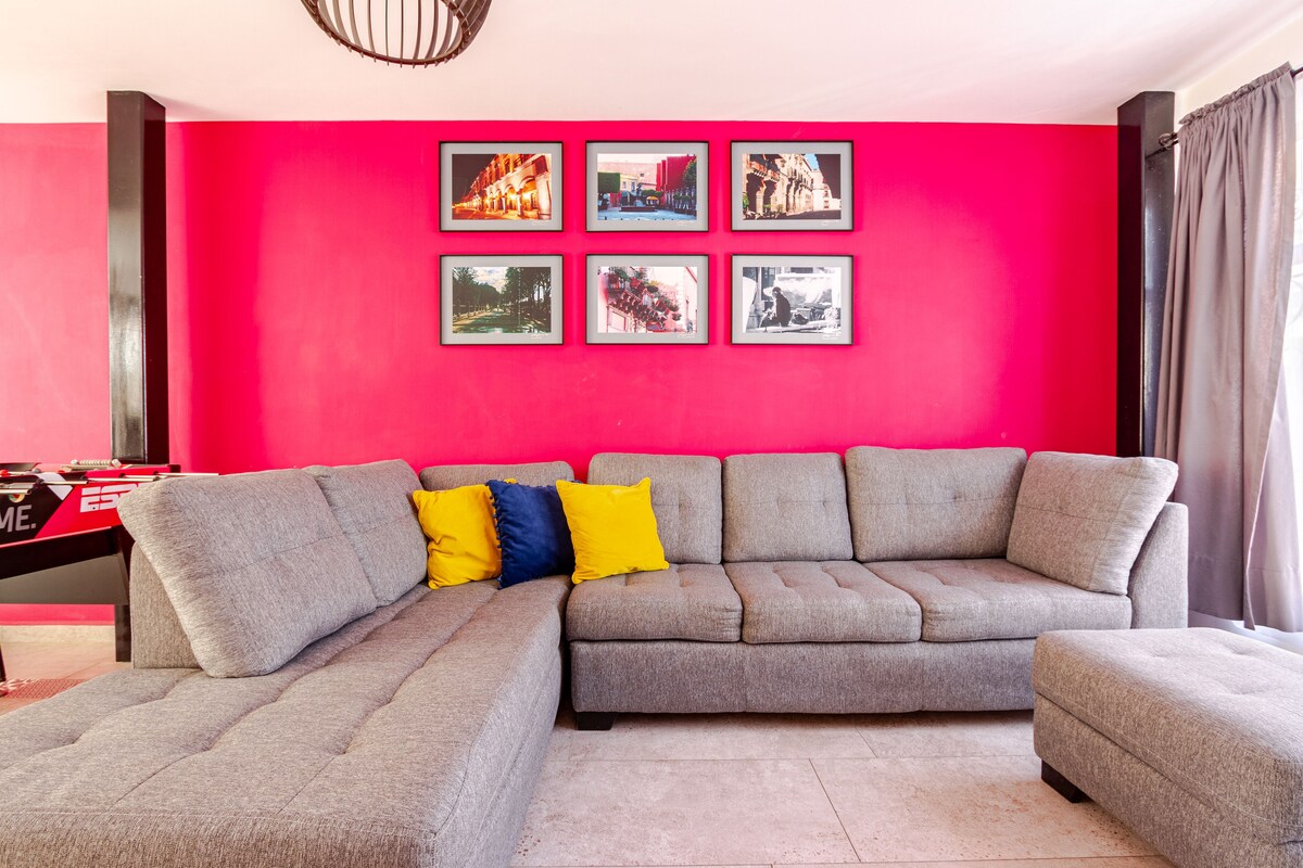 Relájate con toda la familia en este alojamiento donde la tranquilidad se respira. En la casa de las tías te sentirás completamente relajado, rodeado de plantas, flores con vista al campo de golf y parte del estanque donde podrás ver a los patos, la tranquilidad que rodea el lugar es invaluable. Podrás disfrutar de la alberca y hacer carne asada en la terraza. El estilo colonial mexicano hará que te sientas en un lugar confortable.