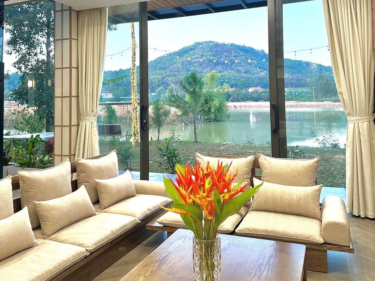 Located in Flamingo Dai Lai Resort -Vinh Phuc province (about an hour from downtown Hanoi), Sol Villa features spacious floor plan with 3 bedrooms, 1 private pool with beautiful lake view - one of the best lake view in Resort. Tọa lạc trong khuôn viên Flamingo Đại Lải Resort, Sol Villa của chúng tôi có 3 phòng ngủ và 1 hồ bơi với tầm view tuyệt đẹp, ôm trọn view hồ Bách Thanh với bãi cỏ xanh mát, rộng rãi trả dài tầm mắt. Đây là một trong những villa có view hồ đẹp nhất Resort.