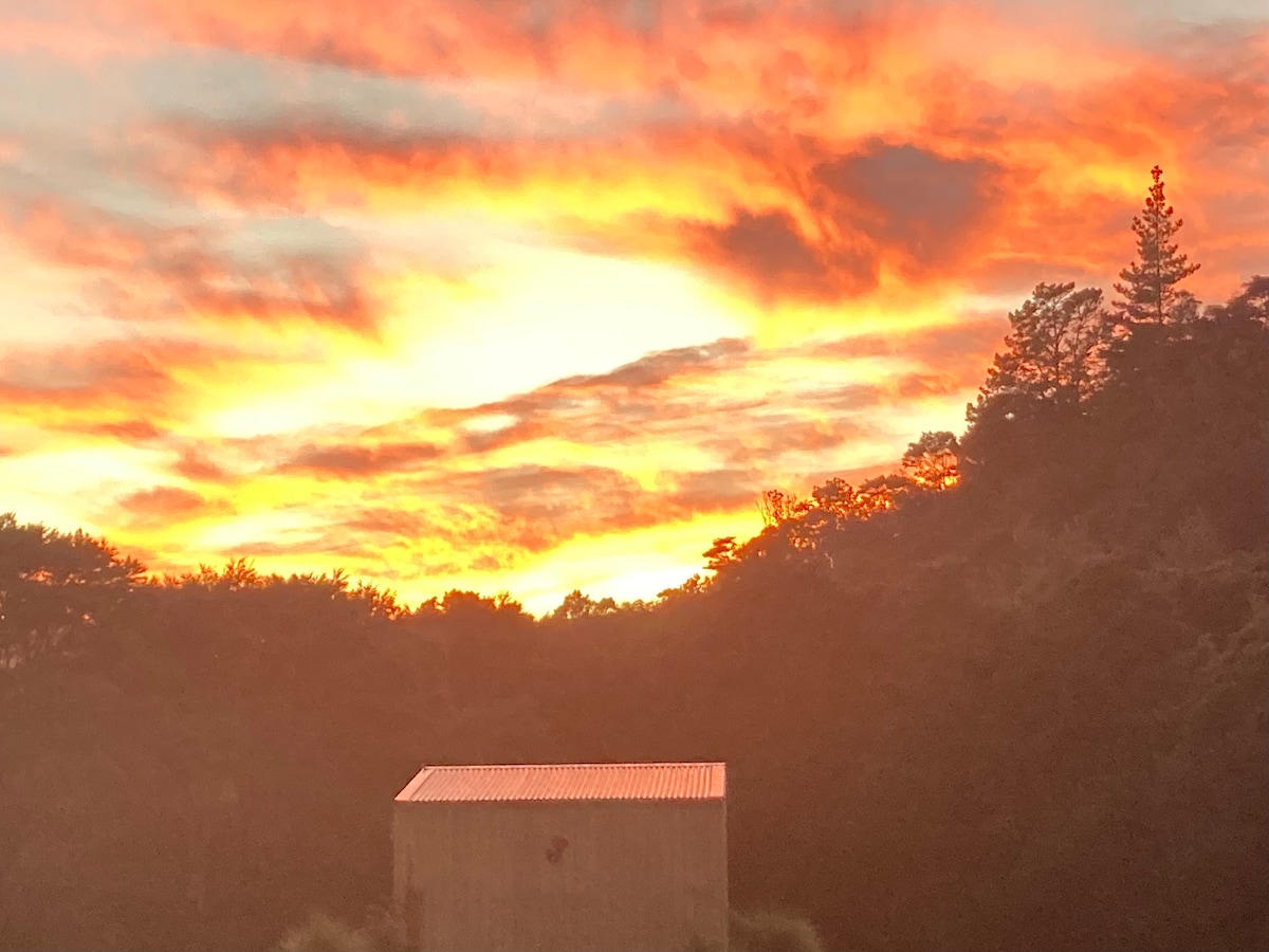 Расположенный в родном кусте, с видом на живописную деревню Куаотону в Короманделе (всего в 2,5 часах езды от Окленда), находится наш роскошный заповедник, где звук океана или киви помогут вам выспаться. Представьте себе сказочное деревянное шале с двуспальной кроватью размера King size, роскошным органическим хлопковым постельным бельем, ванной комнатой, холодильником, мини-кухней с горячей плитой и барбекю на открытом воздухе. Полностью автономный, так что вы можете полностью расслабиться и насладиться видом в своем темпе.