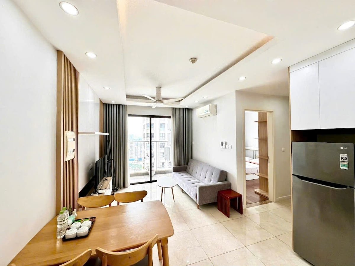 ◈ Сеть современных апартаментов, расположенных в роскошных жилых комплексах Ханоя. Vinhomes D'Capitale — одно из лучших мест для проживания в Ханое. Каждая квартира со вкусом оформлена, сверкает чистотой и имеет отличный вид на город, вид на озеро с лучших этажей. Мы предлагаем идеальное размещение для пар, семей, командировок или одиночных путешественников. ◈ В этой совершенно новой квартире есть 2 спальни с пружинными матрасами, 1 отдельная ванная комната, гостиная с удобным диваном для отдыха с телевизором Smart TV.