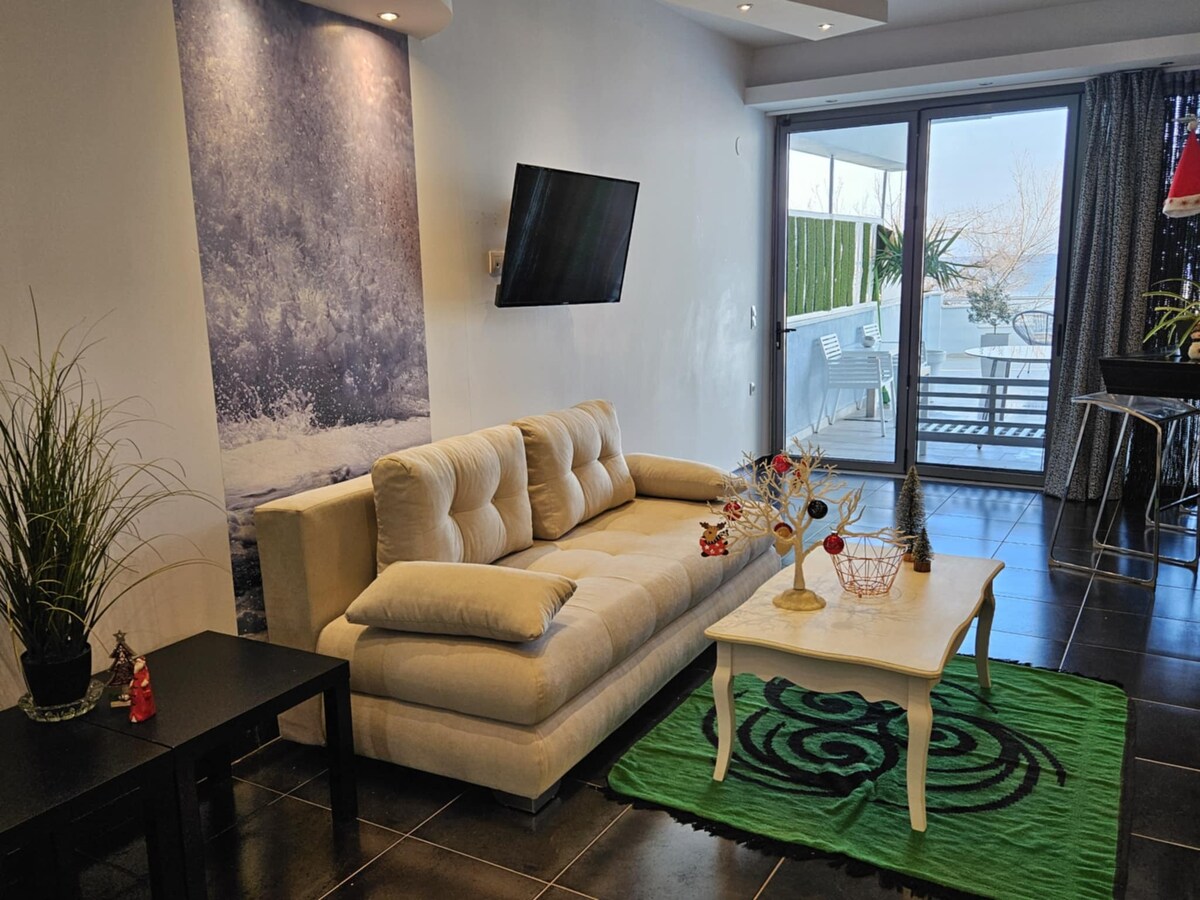 Современная квартира на берегу моря (45 кв. м) с большими балконами, которые буквально «касаются» моря. Наслаждайтесь уникальными видами на море, удивительными закатами и песчаный частный пляж. Светлые и со вкусом оформленные интерьеры с одной отдельной спальней с двуспальной кроватью, кухней открытой планировки, ванной комнатой с душем и удобным жилым пространством с модульным диваном-кроватью, которое становится правильным двуспальным или двумя односпальными кроватями. В апартаментах могут разместиться 2 гостя.