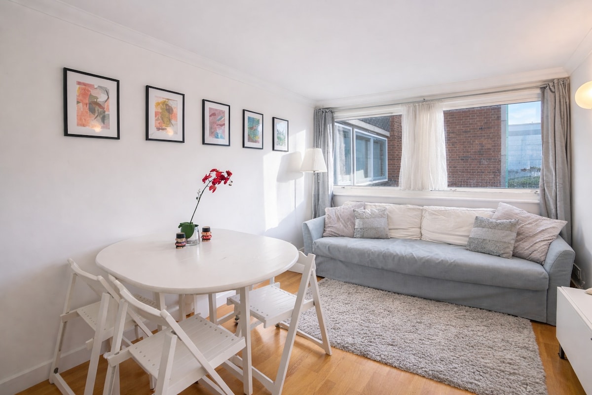 Добро пожаловать в ваше спокойное жилье в центре Лондона! В этих чистых уютных апартаментах с 1 спальней установлена роскошная двуспальная кровать размера Queen size. Непревзойденное расположение находится в 100 метрах от лучших ресторанов, пабов и супермаркетов. Расположенный на тихой тупиковой улице, вы насладитесь спокойствием, несмотря на центральное расположение. Квартира расположена на 7-м этаже с лифтом и прохладно даже в теплые дни с открытой дверью балкона. Наслаждайтесь быстрым Wi-Fi и элегантными деревянными полами.