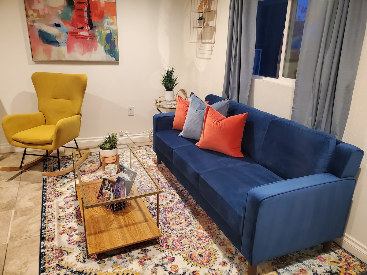 Это очаровательное жилье предлагает отличное и сказочное пребывание для гостей. В комнате очень удобная и стильная кровать размера Queen size. К услугам гостей оборудованная кухня и собственная ванная комната для освежающего душа. Оставайтесь на связи с Wi-Fi и телевизором с Netflix ,You Tube ,наслаждайтесь этими удобствами (запросите список). Независимо от того, исследуете ли вы оживленный город или испытываете удачу в казино, наша студия - идеальная база для вашего приключения в Лас-Вегасе.