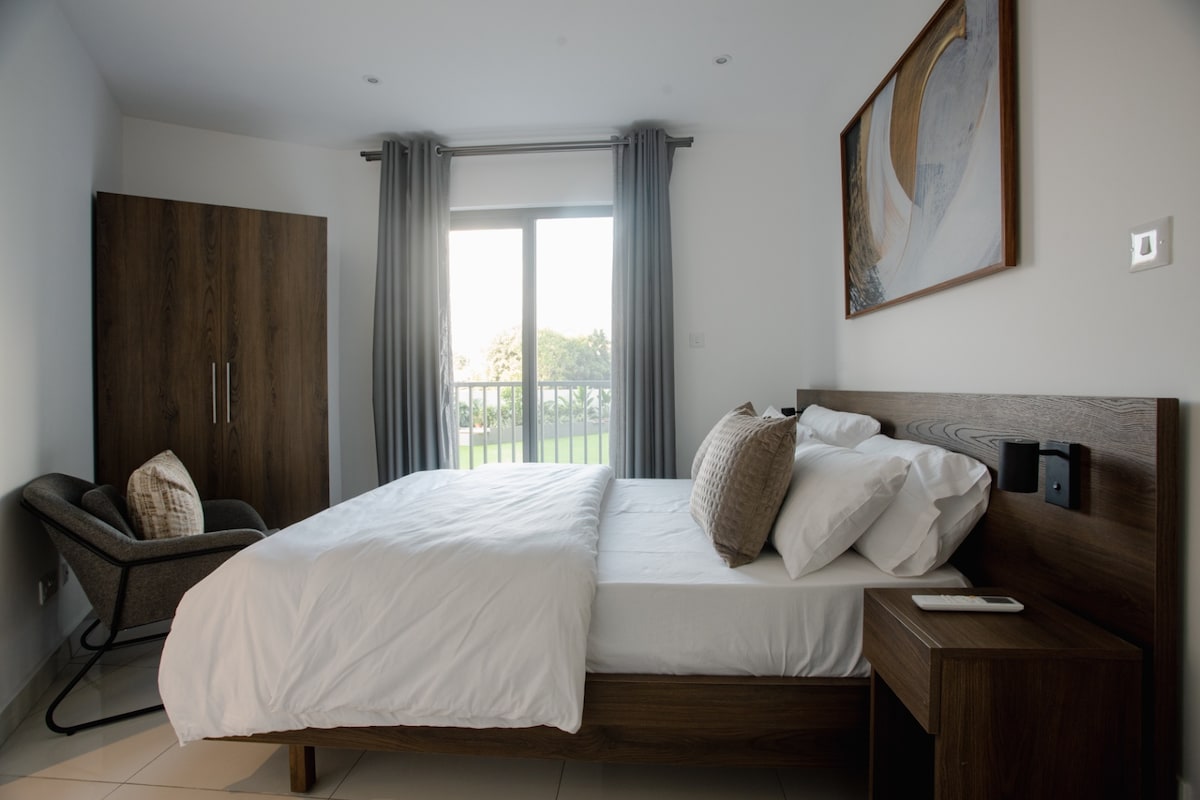 Исследуйте Аккру из современной, функциональной и первозданной квартиры-студии, расположенной в центре города. Это просторное помещение с кухней и балконом, где вы почувствуете себя как дома. Быстро поселитесь, когда прибудете из аэропорта, который находится в 10 минутах езды, и перекусите в бистро внизу. На территории круглосуточная бесплатная парковка, бесплатный Wi-Fi и охрана. Наслаждайтесь всеми удобствами, которые можно ожидать от современной городской квартиры. Идеально подходит как для деловых путешественников, так и для отдыхающих!