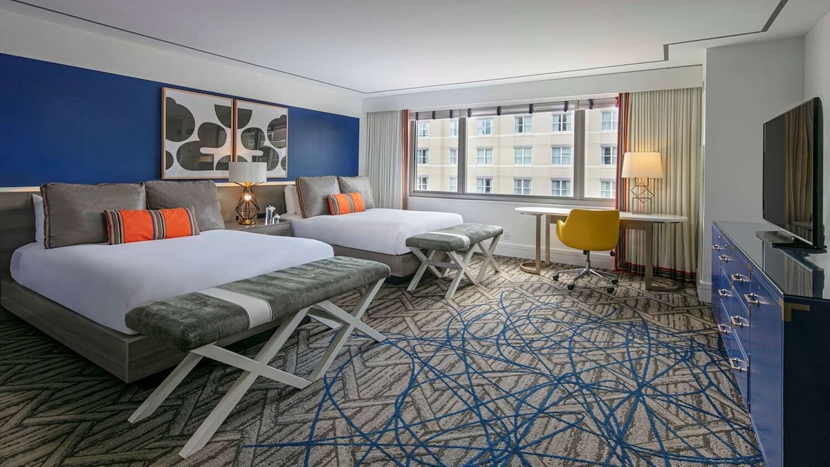В отеле может потребоваться кредитная карта или залог на случай непредвиденных ситуаций. Курортный сбор в размере 40,58 долларов США за ночь за номер взимается отелем. Погрузитесь в энергию города в нашей комнате с видом на город. Номер с удобной двуспальной кроватью размера King size и захватывающим видом на Вашингтон, округ Колумбия, обеспечивает стильное и расслабляющее пространство для вашего пребывания. Наслаждайтесь сущностью города, не выходя из комнаты в нашем жилье City View King.