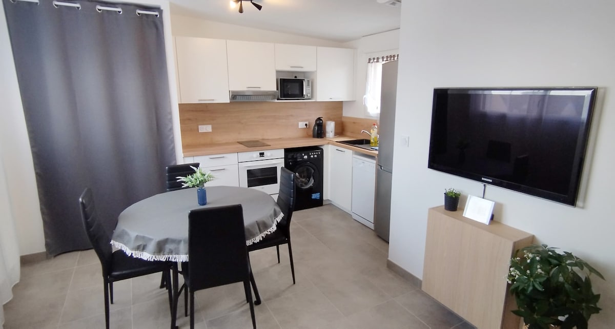 Очаровательная тихая квартира. Идеальное расположение у входа в Пресквиль-де-Руис, в 10 минутах от Ванна, приезжайте и откройте для себя регион и насладитесь пляжами, прогулками по прибрежной тропе (GR34) и многочисленными пешеходными тропами, городом Ванн и его рынком, островам залива Морбиан ... В нем есть гостиная, спальня и антресоль, где можно почувствовать себя как дома.
