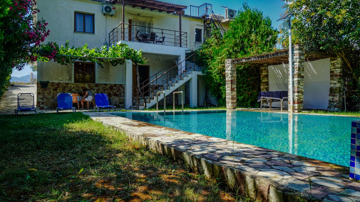 Гостевой дом для семей из 2-4 человек, идеально подходит для тех, кто любит природу и спокойствие. Расположен на 3 гектарах газона, в районе Гастури, в 7 км от центра города и в 10 минутах от ближайшего пляжа. Состоит из кухни, ванной комнаты, спальни с мансардой в спальной зоне и частного бассейна. Хозяйка живет в соседнем доме и может помочь вам в любом вопросе. Снаружи есть домашние животные и небольшая ферма с курами и огородом.