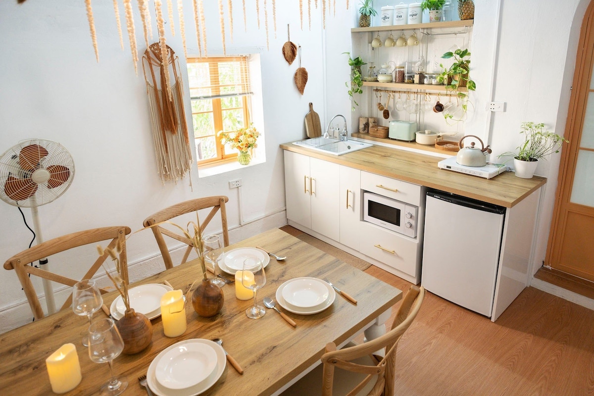Это дом, расположенный прямо в центре Старого квартала Ханоя, оформленный в стиле бохо с естественным освещением. У вас будет пространство, наполненное зеленью, и просторный балкон с видом на наш тропический сад. Ваш комфорт для нас важнее всего. Вы можете пользоваться всем домом, включая спальню, кухню, гостиную, небольшую садовую зону и прачечную. Мы хотим, чтобы вы чувствовали себя как дома.