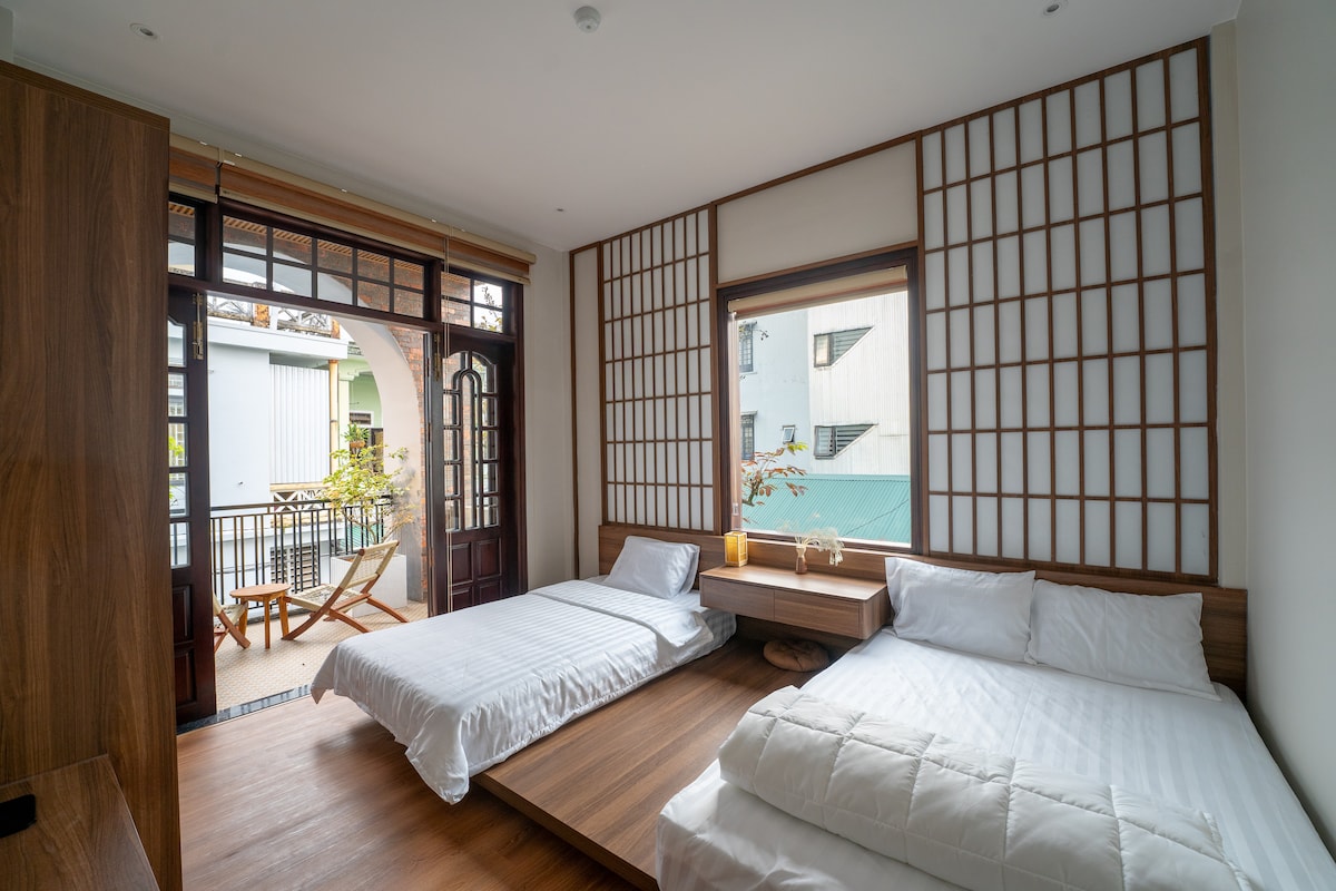 Номер Tịnh (Спокойствие) – Вдохновленный чувством спокойствия и умиротворения, номер Tịnh предлагает спокойное и уютное пространство, предназначенное для комфорта и отдыха. В комнате, расположенной в центре имперского района Хюэ, есть уютная кровать размера Queen size, отдельная ванная комната и балкон на крыше с видом на Имперский город. Всего в нескольких шагах от Цитадели и в нескольких минутах ходьбы от реки Хыонг и пагоды Тхиен-Му, с зеленым парком и оживленным местным рынком рядом, это идеальная база для знакомства с Хюэ и местной жизнью.