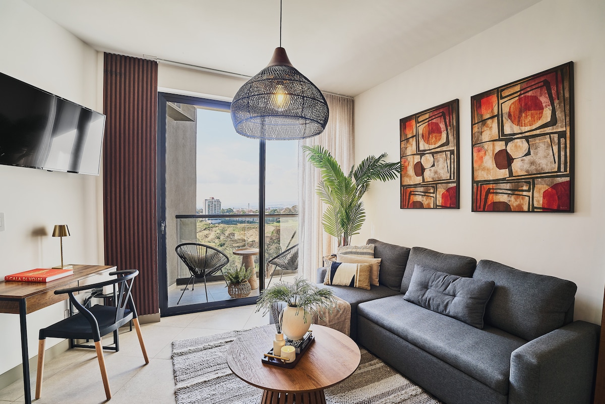Ощутите комфорт в этом кондоминиуме с 1 спальней, расположенном в центре города, всего в 15 минутах от Сан-Хосе. С 12-го этажа открывается потрясающий вид на город и горы на рассвете. В интерьере есть высокоскоростной Wi-Fi, современная кухонная техника, элегантный декор и плюшевая кровать для максимального расслабления. В здании есть впечатляющий набор удобств, включая полулимпийский бассейн, сауны, тренажерный зал, коворкинг, костровища, игровую комнату и террасы на крыше с панорамным видом на город.