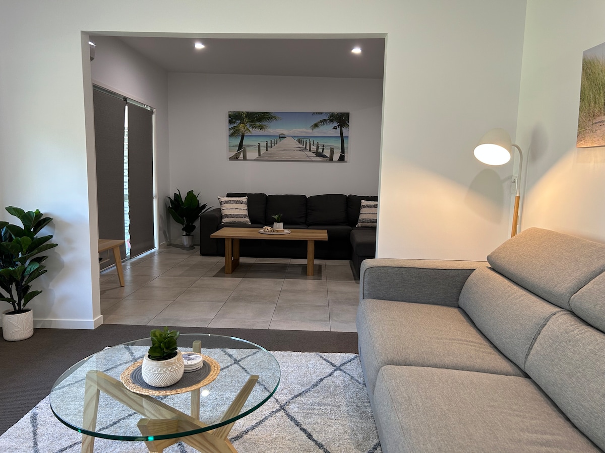 Отдохните в тихом пляжном доме В нескольких минутах ходьбы от IGA, пекарни, пляжа, игровой площадки и загородного клуба/поля для гольфа. Кухонные принадлежности, посуда и барбекю в вашем распоряжении, а также разнообразные рестораны или рестораны поблизости. Стиральная машина с наружными и крытыми веревками для белья Обеденные зоны внутри и снаружи Смарт-телевизор, Wi-Fi, DVD-плеер и ограниченные настольные игры. Предоставляется постельное белье, подушки и полотенца. Огороженный задний двор для детей и домашних животных. Кормление дельфинов неподалеку и в 30 минутах езды от пляжа Радуга.