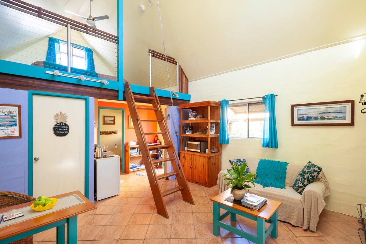 Современная квартира, предназначенная для пар, расположена в центре Радужного пляжа. Он находится всего в нескольких минутах ходьбы от местного торгового района, патрулируемых пляжей и красивых прогулок в кустах. Лофт автономный с бесплатным Wi-Fi, кондиционером, зоной барбекю, мини-кухней, континентальным завтраком и всем постельным бельем.