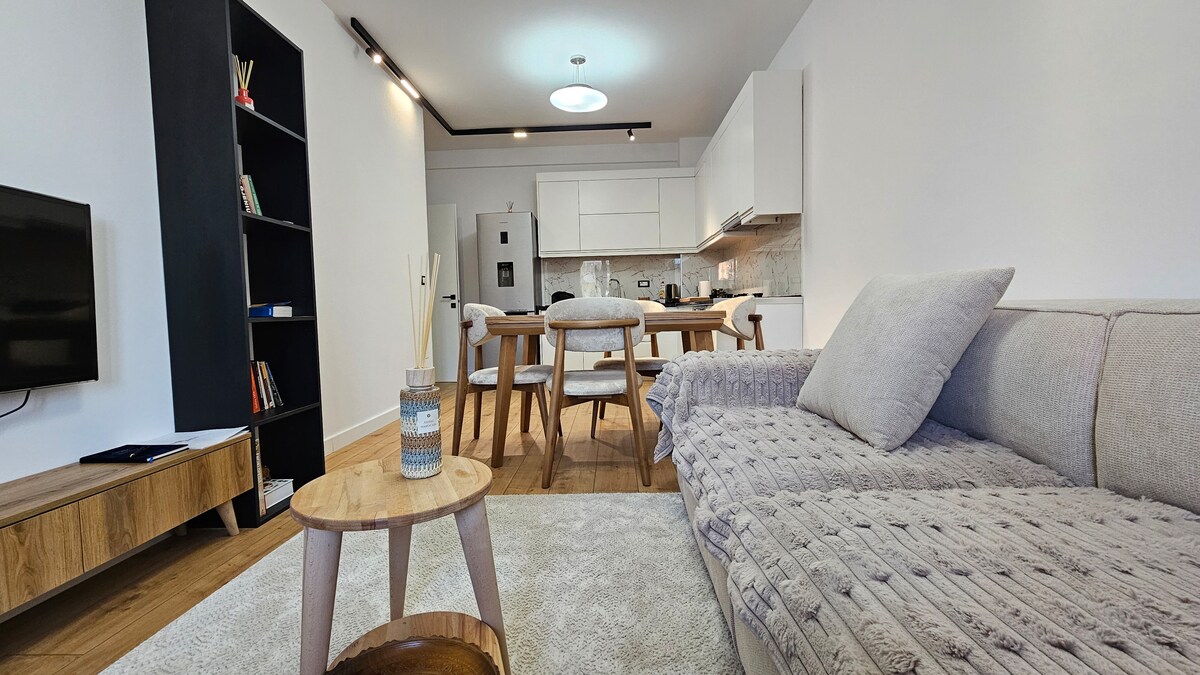 Жилье светлое, комфортабельное и полностью оборудованное, чтобы вы чувствовали себя как дома, независимо от того, приезжаете ли вы в короткую поездку или на длительный срок. Квартира идеально подходит для семей, друзей или деловых путешественников, предлагая частную веранду с прекрасным видом, современные удобства и легкий доступ к местным кафе, ресторанам и магазинам. Квартира расположена в районе Komuna e Parisit, в окружении уютных кафе и семейных ресторанов.