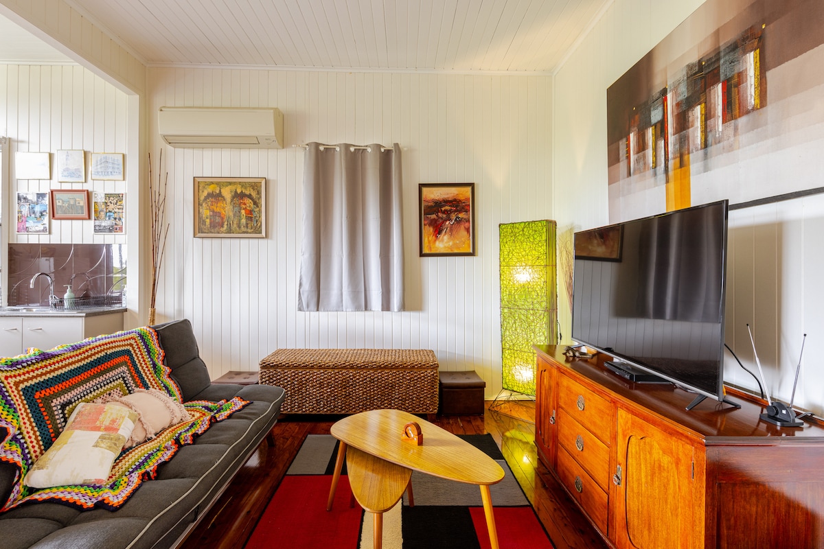 В коттедже Ruth 's Cottage есть все необходимое для комфортного проживания в Ипсвиче: полностью оборудованная кухня, 2 спальни с двуспальными кроватями размера Queen size, обеденная зона и отдельные гостиные. Этот светлый коттедж с кондиционером, доступом в Интернет NBN с высоким содержанием семян находится в нескольких минутах ходьбы от центра города и больничного участка. Спальни находятся на противоположных концах дома для уединения. Если забронировано менее чем на двух человек, вам нужен доступ ко 2-й спальне или если для односпальной кровати взимается небольшая дополнительная плата. Быстрая зарядка электромобиля в 50 метрах вниз по улице. Коттедж был отремонтирован с роскошной отделкой и фурнитурой, но при этом чувствуя себя как дома. Обе кровати имеют совершенно новые фирменные матрасы с прекрасными мягкими подушками и высококачественным постельным бельем. Полностью укомплектованная кухня и все туалетные принадлежности включены. Весь коттедж в распоряжении гостей, включая парковку для двух автомобилей на улице. Мы дружелюбные хозяева, всегда рядом по телефону, но хотим, чтобы вам было удобно в доме. Популярная пивоварня 4 сердца, ресторан Dovetails и мороженое Brothers находятся всего в нескольких минутах ходьбы в известняковом районе 88, который также является популярным функциональным центром. Брисбен-стрит и торговый центр находятся прямо за этим районом с большим количеством ресторанов и кафе, супермаркет находится в 10 минутах ходьбы на Гордон-стрит. До центрального железнодорожного вокзала и больницы Ипсвича можно легко добраться пешком из коттеджа. Художественная галерея Ипсвича и гражданский центр находятся в 3 минутах ходьбы. Перед домом также есть уличная парковка. Прогулка до железнодорожного вокзала Ипсуича с прямым сообщением с Центральным деловым районом Брисбена и аэропортом займет 5 минут. Это очень тихая улица, особенно в ночное время.