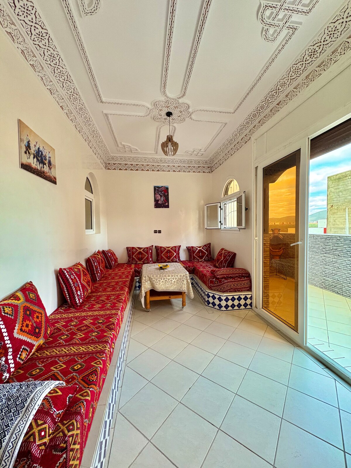 🌊 Une parenthèse à deux pas de l’océan Bienvenue à Dar Louisa, notre maison de famille, ancienne maison de pécheur née dans les années 1980. Entierrement rénovée, style Riad, située à seulement 300 mètres de la plage, dans laquelle charme berbère et confort douillet se marient parfaitement. Profitez d’un service quotidien (ménage, lits faits, vaisselle) pour un séjour sans contraintes. 🏆Ce logement fait partie des 10 % de logements préférés sur Airbnb.