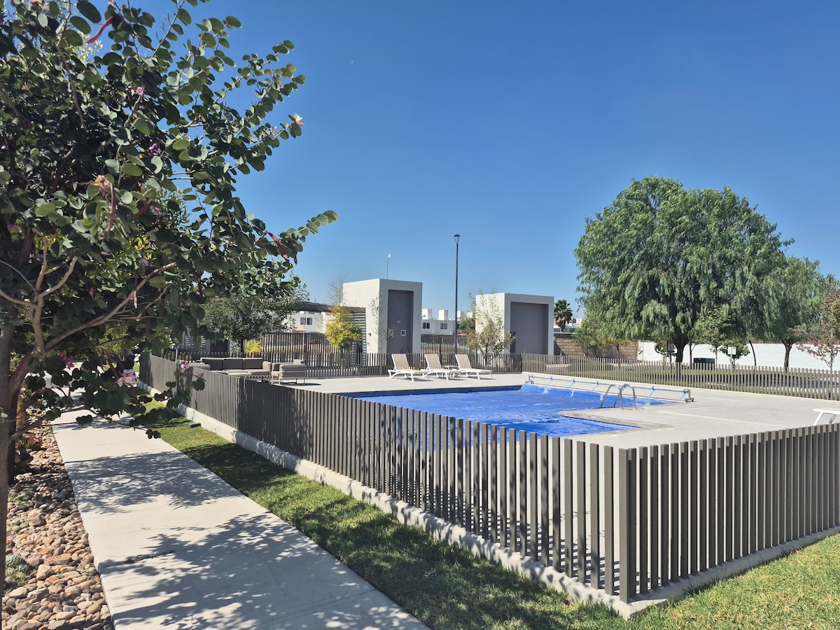 Мы находимся на западе Керетаро с различными подъездными дорогами. У него есть собственная парковка, и если у вас нет автомобиля, главный проспект в нескольких шагах, вы можете найти различные виды транспорта, а также коммерческую зону. В подразделении есть OXXO. * Наслаждайтесь такими удобствами, как: - Общая зона и детские игры. - Контролируемый доступ - Wi-Fi 30 МБ и кабельное телевидение. В главной спальне есть двуспальная кровать. - Односпальная кровать во второй спальне - Софакама.