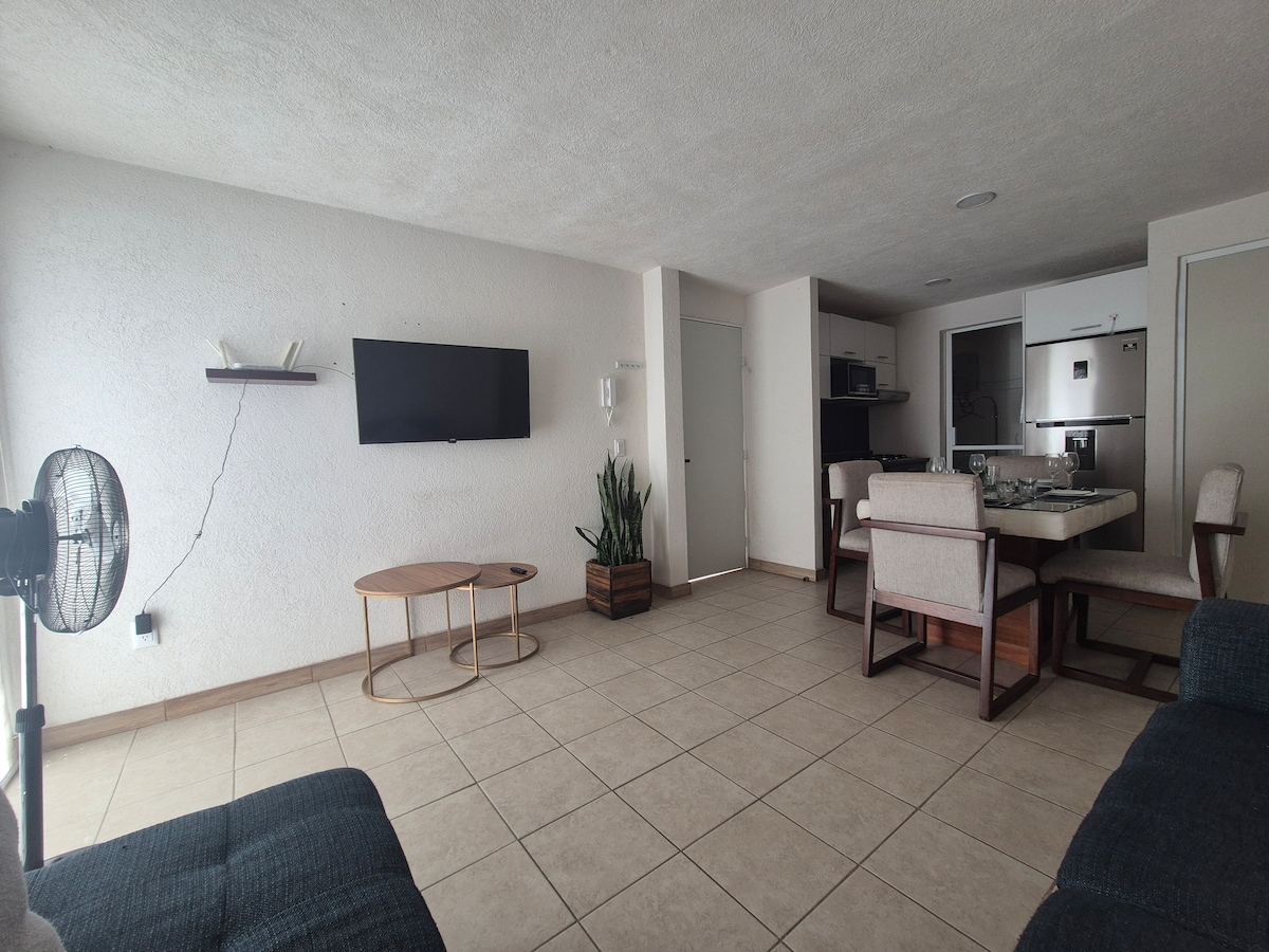 Это место имеет стратегическое расположение: планировать свой визит будет очень легко! Идеально подходит для туризма, бизнеса, в центре Тлакепаке в 3 кварталах от париана, рядом с аэропортом, туристическими местами, ресторанами. - Расположена на втором этаже - Парковка - В ней есть услуги ( интернет, телевидение). - Кондиционеры в комнате. - Гостиная, столовая. - 2 спальни - Стиральная машина-сушилка - Биллинг