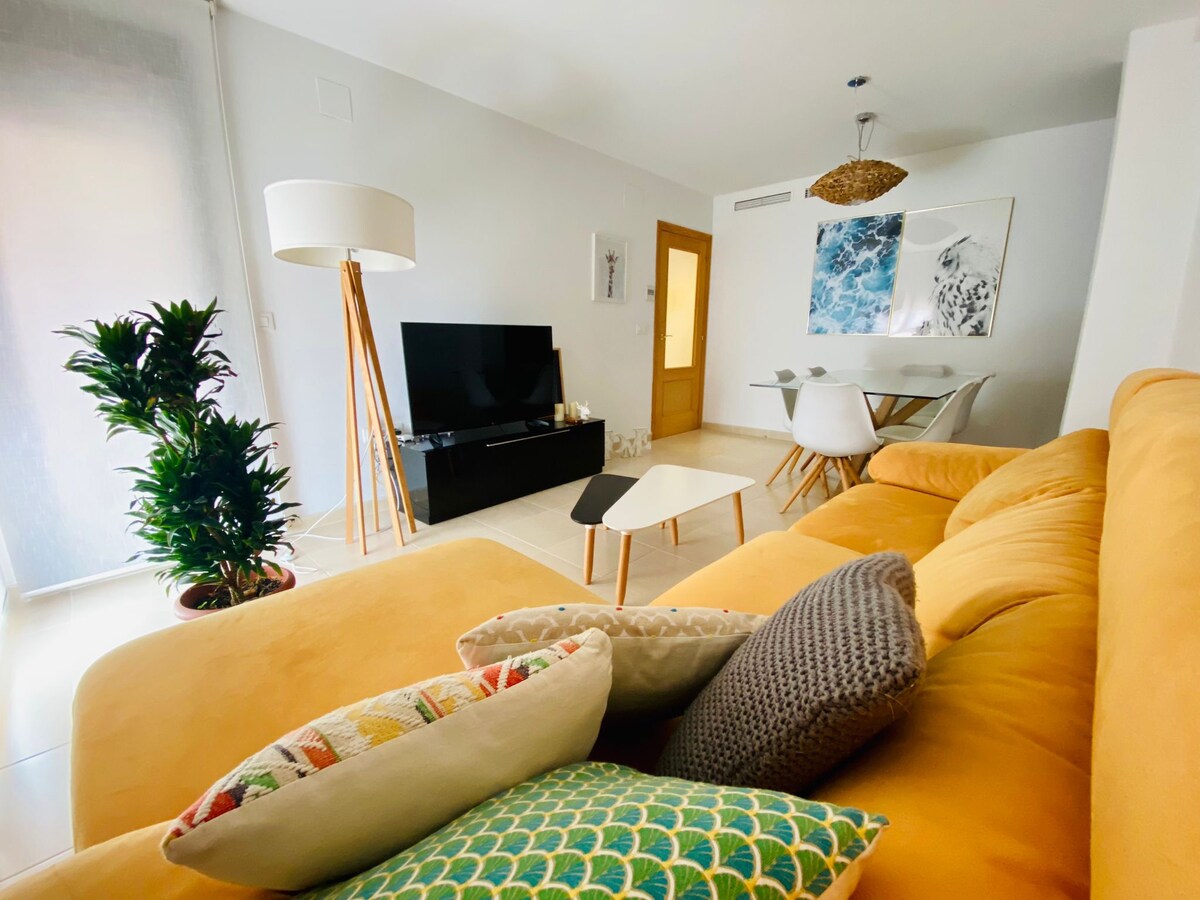Welcome to our stylishly refurbished apartment in a charming Modernista townhouse. This stunning top-floor retreat features two double bedrooms, a spacious open-plan living area with high vaulted ceilings, and a large terrace with views. Enjoy high-speed internet, a fully equipped kitchen and a workspace. Village pool open in summer. Perfect for a relaxing stay in the heart of southeast Spain, close to beautiful hiking trails, beaches, and vibrant local culture.
