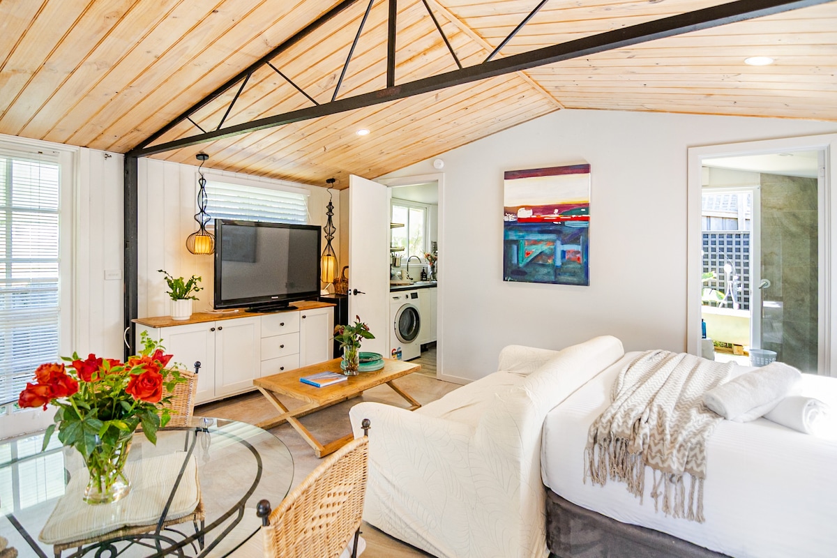 Эта полностью отремонтированная отдельная студия находится в 5 минутах езды от делового центра Джелонга. Наша новая высококачественная двуспальная кровать размера King size обеспечит вам глубочайший сон с качественным постельным бельем, электрическими одеялами и высококлассным пуховым диваном с дополнительными одеялами. В студии есть роскошная ванная комната с душем, итальянской плиткой ручной работы и высококачественной отделкой. Наслаждайтесь собственным двором, чтобы послушать местных птиц или насладиться кофе и чтением.