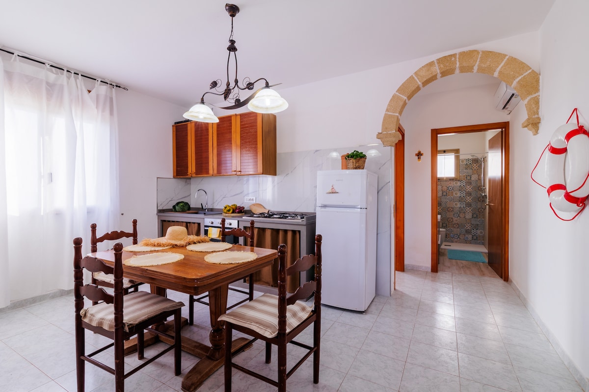 Relax in this apartment with a terrace overlooking the sea, perfect for breakfasts in the sun and aperitifs at sunset. Ideal for those seeking tranquility, comfort, and a true vacation atmosphere in the heart of Salento. The strategic location is just steps from the picturesque seafront, supermarkets, and renowned beaches with crystal-clear waters. A good restaurant nearby makes the experience even more convenient, without having to go too far. Convenience just steps from the sea!