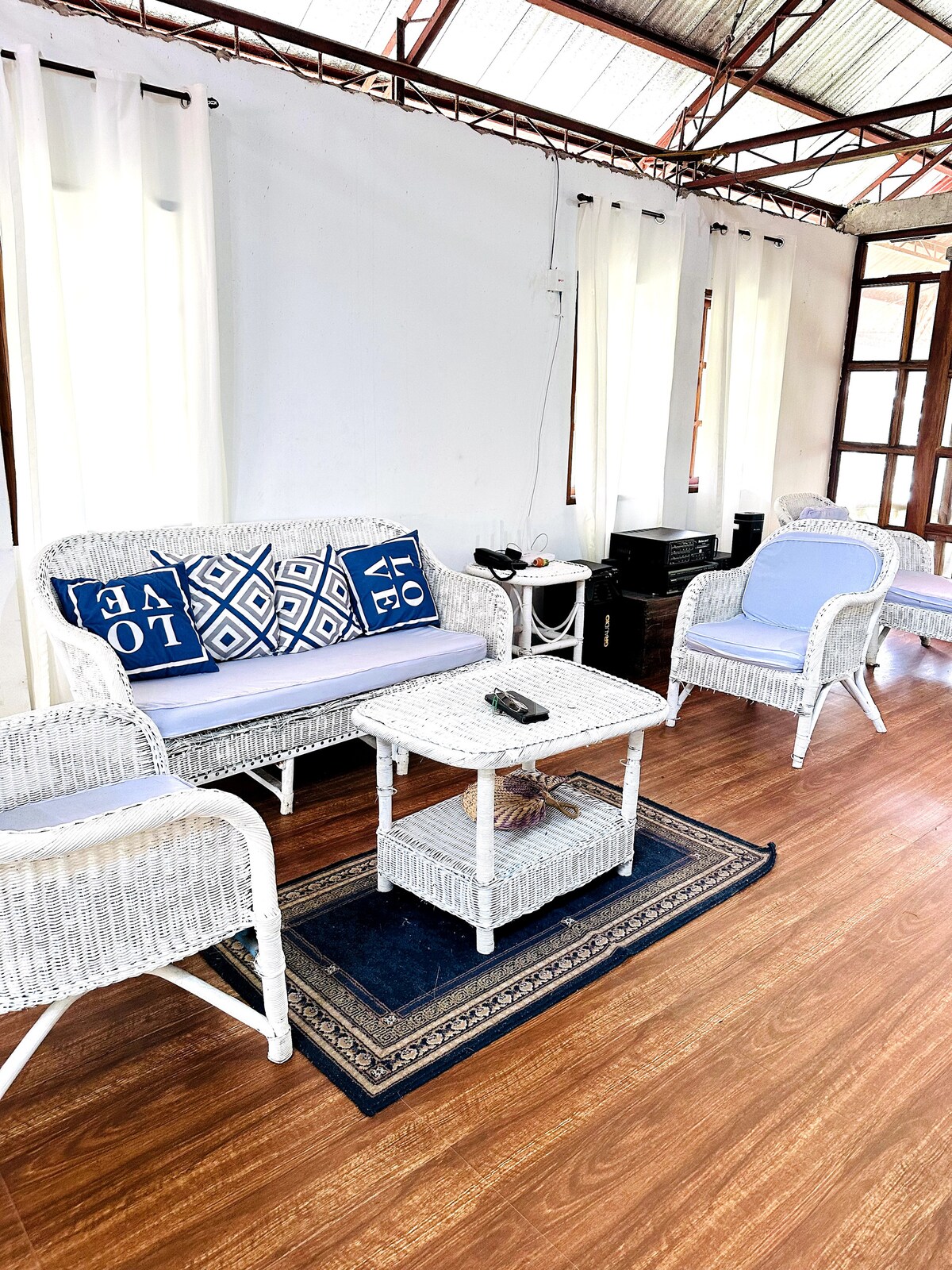 Красивый частный дом на пляже с большим садом, патио, 3 спальни с кондиционером (главная и 2 смежные спальни в лофте на втором этаже, 2 ванные комнаты, кухня, просторная гостиная и обеденная зона с воздухоохладителем). Насладитесь панорамным видом на пляжный дом с потрясающим видом на закат и расслабляющими гамаками. На островах Гасан и Мариндуке доступны прогулки на лодках и другие местные экскурсии. В этом бронировании могут разместиться от 1 до 12 человек. Доступны цифровые фортепиано и маджонг.
