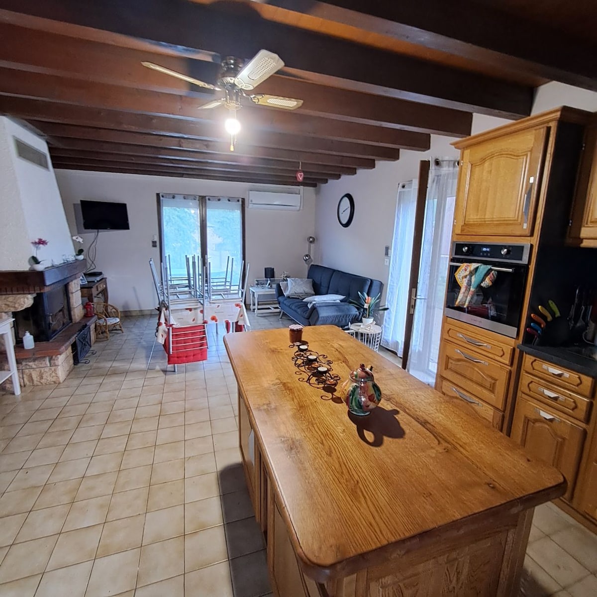 Самый высокий дом в Уссоне, одна из самых красивых деревень Франции, 2 л.с. и гостиная с выходом на улицу , 3 террасы на 3 уровнях и 3 ориентации(восток,юг и запад,на закат!), 2 из которых с видом на Овенн и его вулканы. Для большей независимости 3-я спальня с ванной комнатой ,в соседнем маленьком домике, предлагается за 60 евро за ночь, более 6 гостей(максимальная вместимость главного дома). Базовые магазины в 5 км. Alt 574m A 75-10 мин