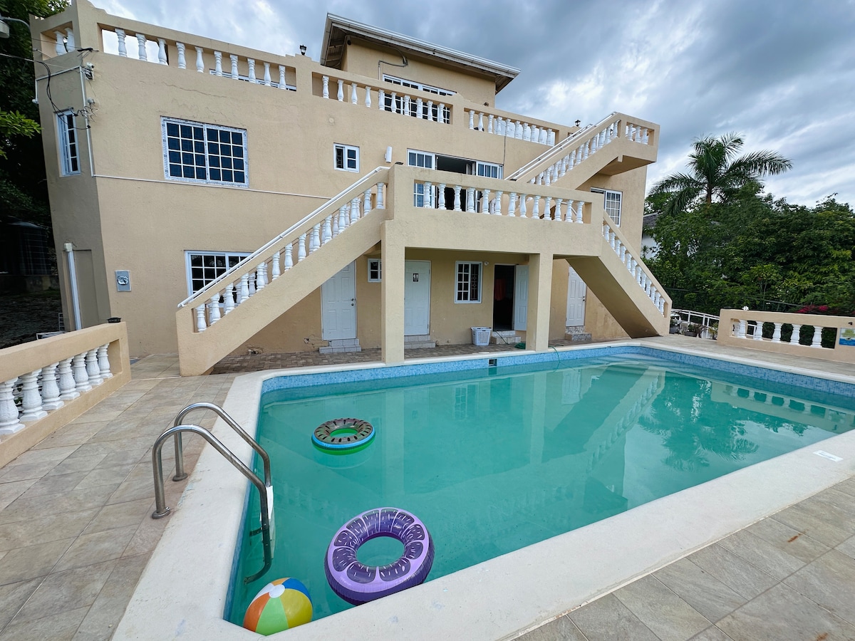 Bring your spouse or partner for adventure to this great place with lots of room for fun. Located 35 minutes from the Montego Bay Airport and 40 minutes away from Ocho Rios, this relaxing retreat will make you feel right at home. We offer 24-hr security along with security cameras on the premises. A swimming pool, gym and jogging trail are some of the amenities offered. All located within 8 minutes is the 876 Beach, Margaritaville, Rafting at Martha Brae and the Falmouth Cruise Pier.