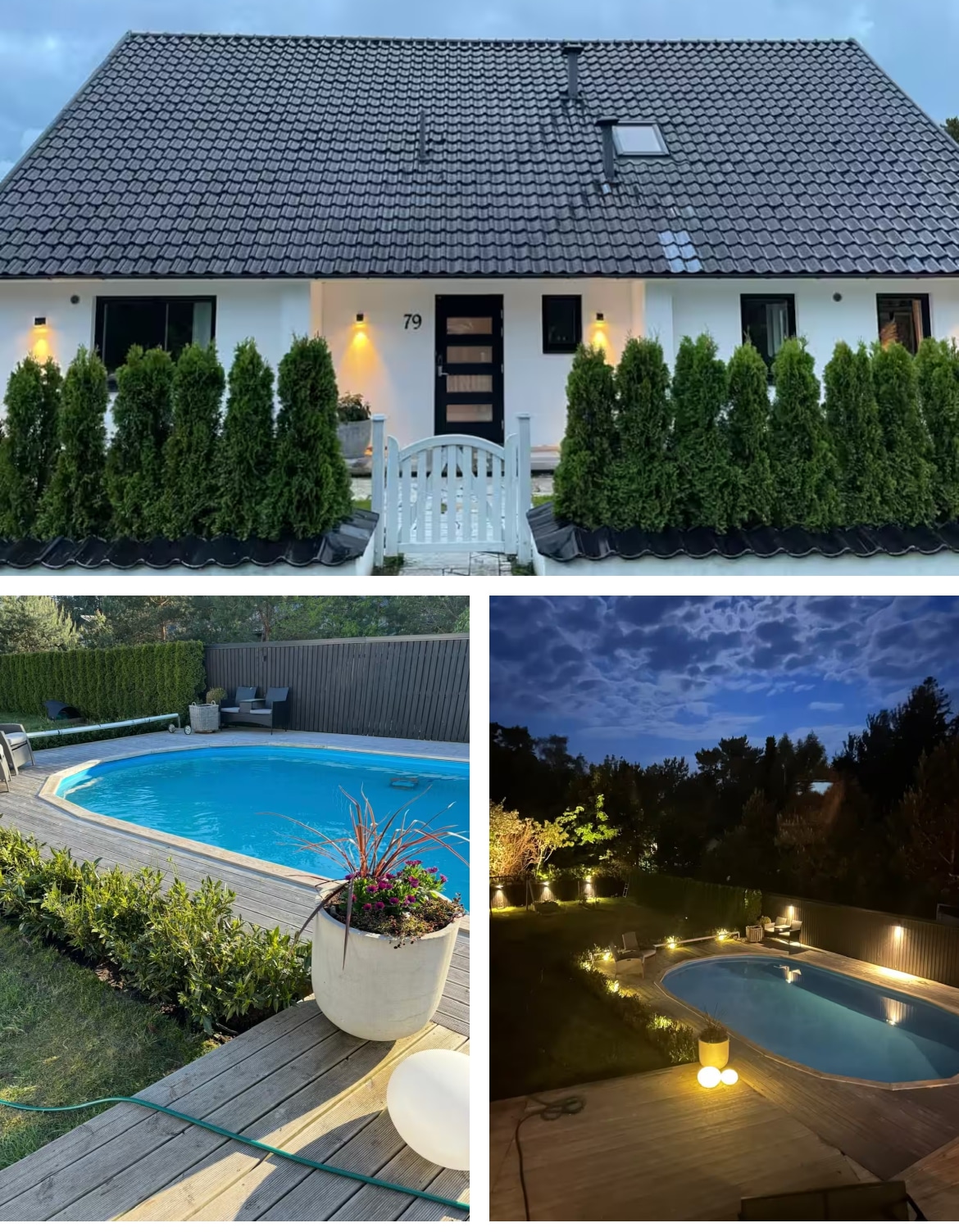 Exklusivt enplanshus på 180 kvm, med ett stenkast till havet. 3 sovrum, 2 badrum, separat rum med tvättmaskin. Fullt utrustat kök med öppen planlösning mot matplats och vardagsrum med TV. Stora öppningsbara skjutglaspartier för att kunna känna närheten till natur och hav. Mysig utomhusyta med pool och fler möjligheter till att äta och umgås.