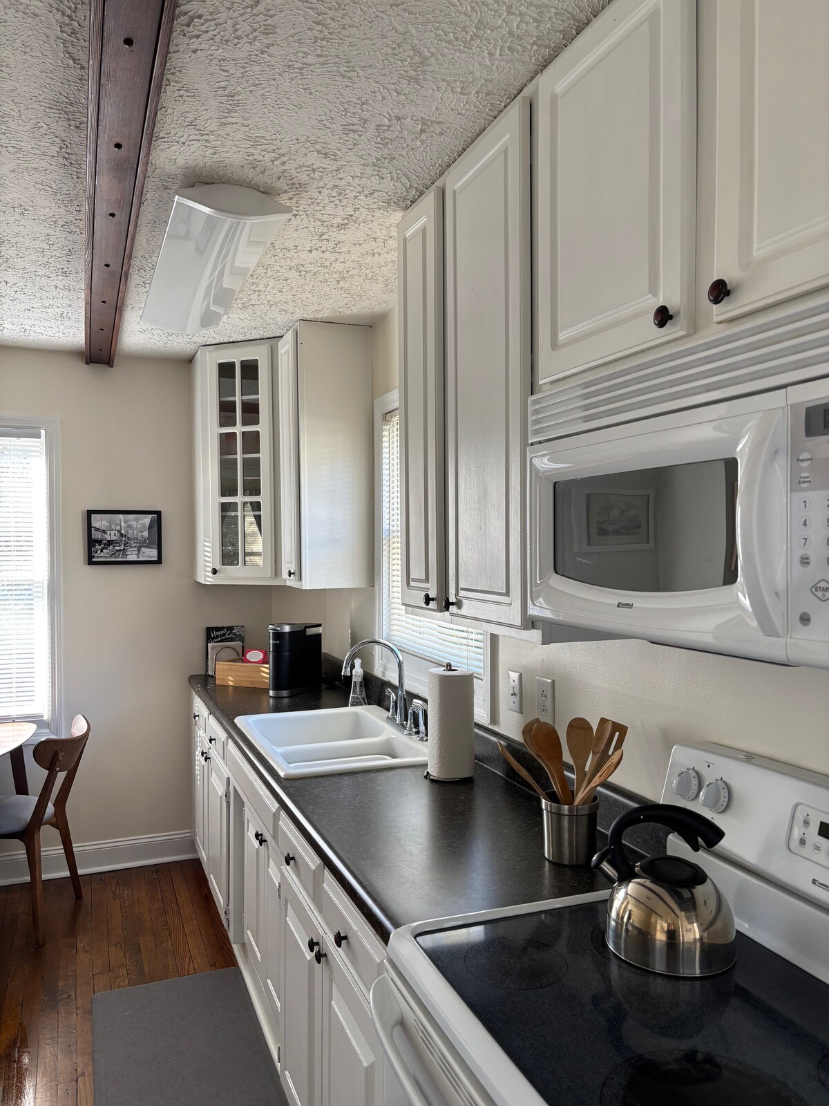 Очаровательный отремонтированный коттедж в 1953 году, расположенный в центре Нью-Берна. Прогуляйтесь до продуктового магазина. 1,4 мили до торгового центра Twin Rivers Mall и Wal Mart. В двух милях от исторического центра города и в полумиле от Регионального медицинского центра Craven Regional Medical Center. Рестораны находятся поблизости. Прогулочный район. В гостиной новый телевизор Smart TV, Wi-Fi и недавно меблированная. В доме две спальни, две близнецы и одна с кроватью размера Queen size с новым постельным бельем и новыми матрасами. Ванная комната с душем, стиральной машиной и сушилкой. Кухня с гранитными прилавками и островом. Четыре места на кухне с едой в столе. Кофе Keurig, закуски для завтрака, кофе, бутилированная вода бесплатно. Вся новая техника. Все необходимое для комфортного проживания. Огороженный задний двор с парковкой на подъездной дороге для двух автомобилей. Прибытие в 15:00. Выезд в 11:00.