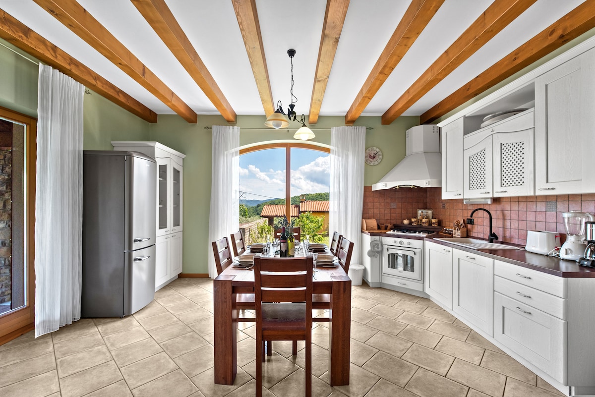 Просторная вилла с панорамными видами, джакузи, сауной, тренажерным залом и сезонным бассейном. Три комфортабельные спальни с ванными комнатами обеспечивают уединение, а гостиная с камином и полностью оборудованная кухня идеально подходят для совместного времяпрепровождения. Большие террасы и барбекю на открытом воздухе идеально подходят для встреч. Идеально подходит для семей, пар и друзей, ищущих как отдых, так и развлечения в спокойной истрийской обстановке.