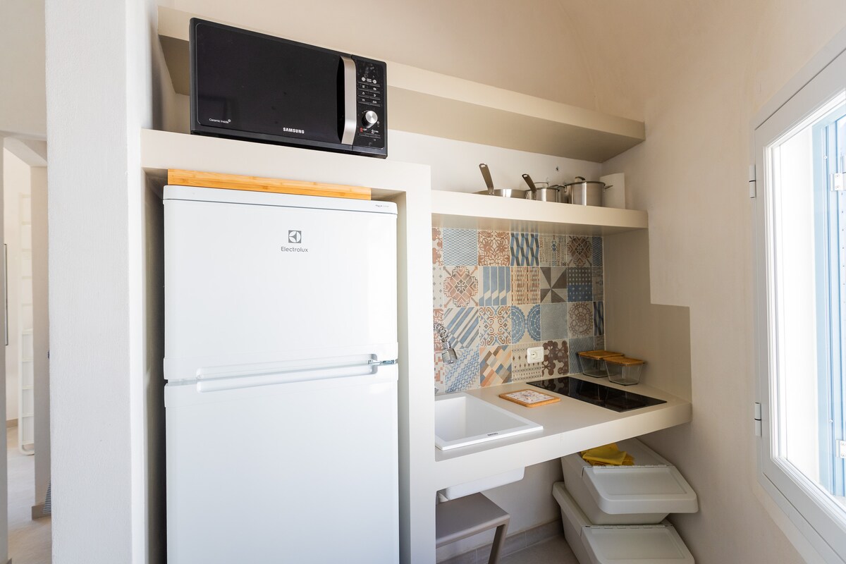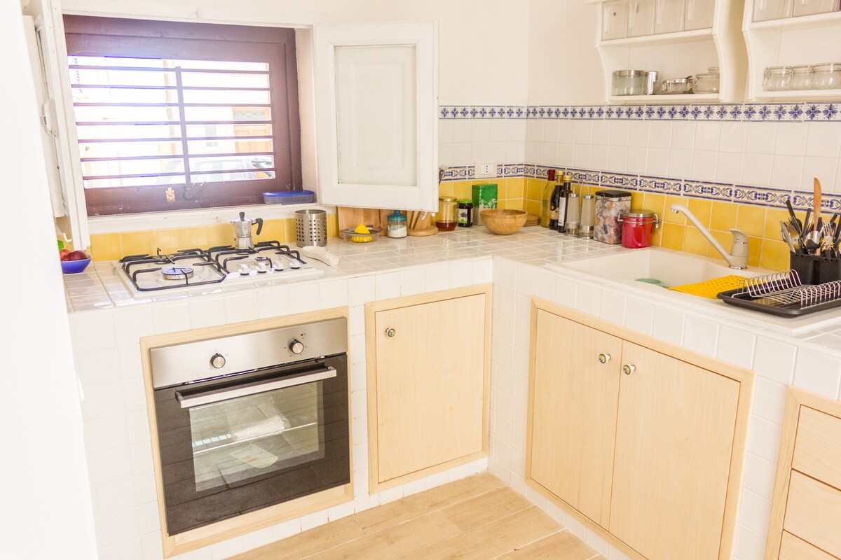 Дом оформлен в винтажном натуральном стиле и состоит из студии с мини-кухней и ванной с душем. Доступ к ней осуществляется из ворот с видом на внутренний двор. Квартира светлая, с видом на пристань Фавиньяна с видом на замок Санта-Катерина, и оборудована кондиционером. На кухне есть все необходимое для приготовления завтрака и небольших блюд.