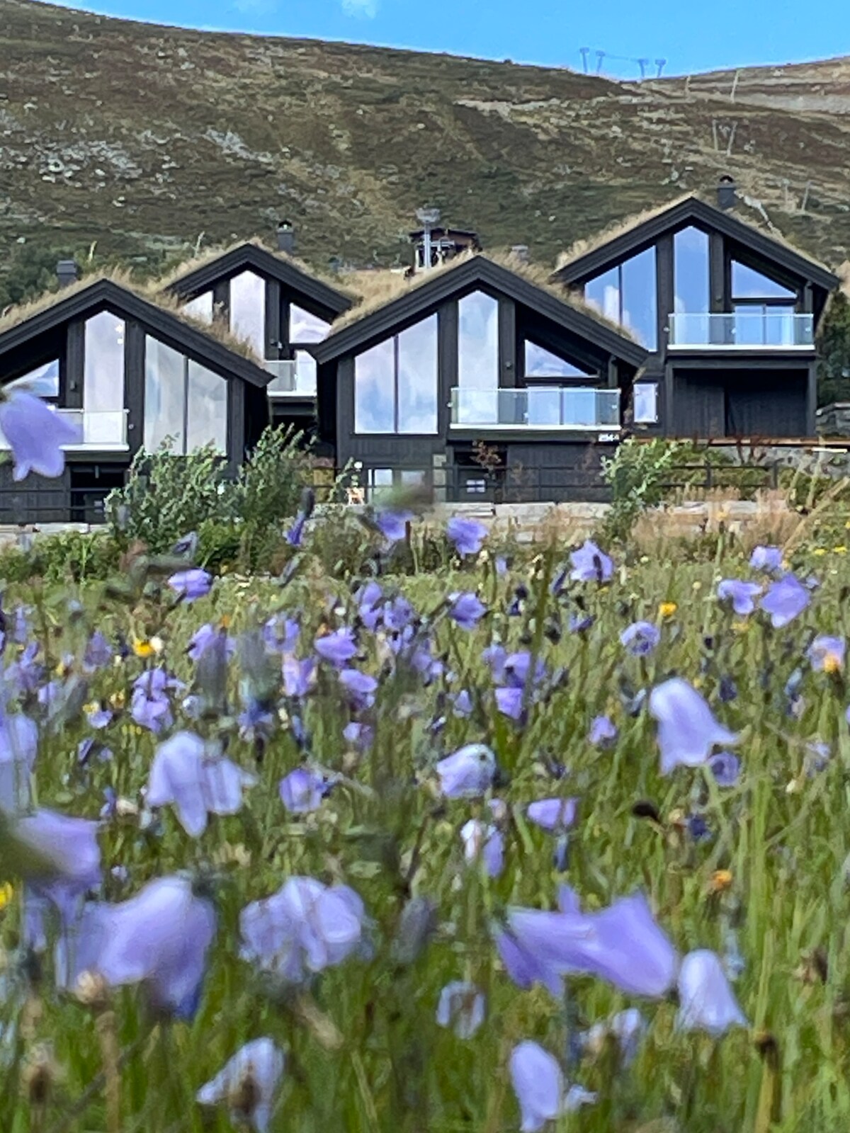Moderne hytte с лыжными склонами