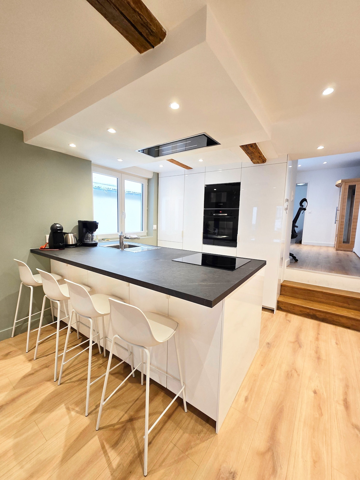 Этот кокон площадью 50 кв. м приветствует вас на ночь, на выходных и на более длительный срок... Роскошная 4-звездочная туристическая меблированная квартира высокого класса. Приезжайте и отдохните в наших двойных креслах для массажа и обогрева, в анатомической ванне с бальнео, в шезлонгах инфракрасной сауны...Выберите цвет своей атмосферы и наслаждайтесь этим моментом под звездами ! Вам понравится высококачественный ЗВУК SONOS, оборудованный помощником по голосовому управлению.