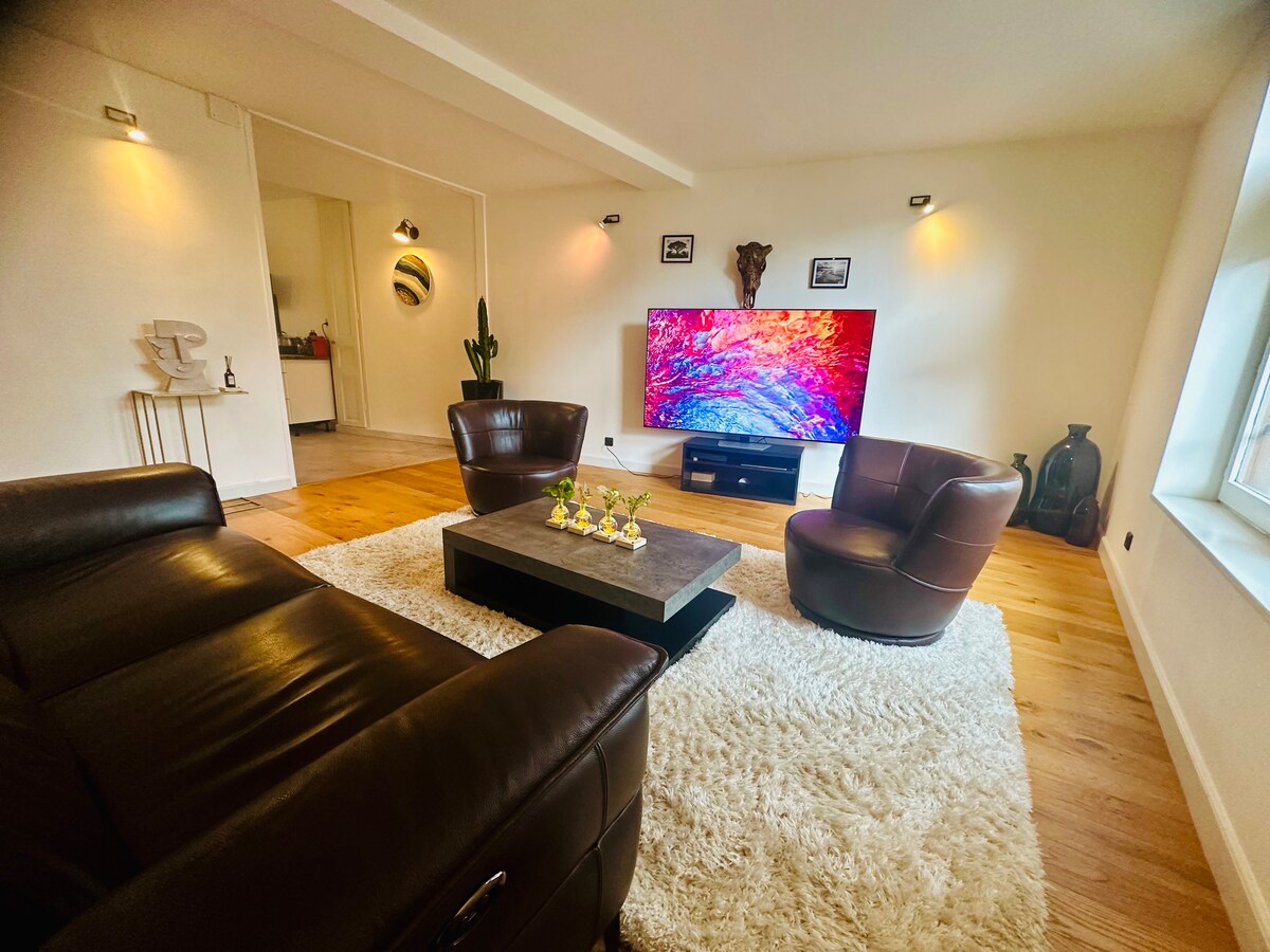 «Le Perchoir» немного похож на крышу Труа, ни одно другое жилье не предлагает такой захватывающий вид на исторический центр :) Вас соблазнят услуги этой со вкусом оформленной и оборудованной квартиры! ☆ Панормный вид на центр города ☆ Расположена в 100 метрах от железнодорожного вокзала Центр ☆ города в 100 метрах от квартиры. Кондиционер ☆ 4K ☆ Высококачественная отделка Постельное белье☆ Simmons 160x200 ☆ Высококлассный телевизор и аудиосистема ☆ Магазины в 1 минуте езды. Нужна информация? Свяжитесь со мной :)