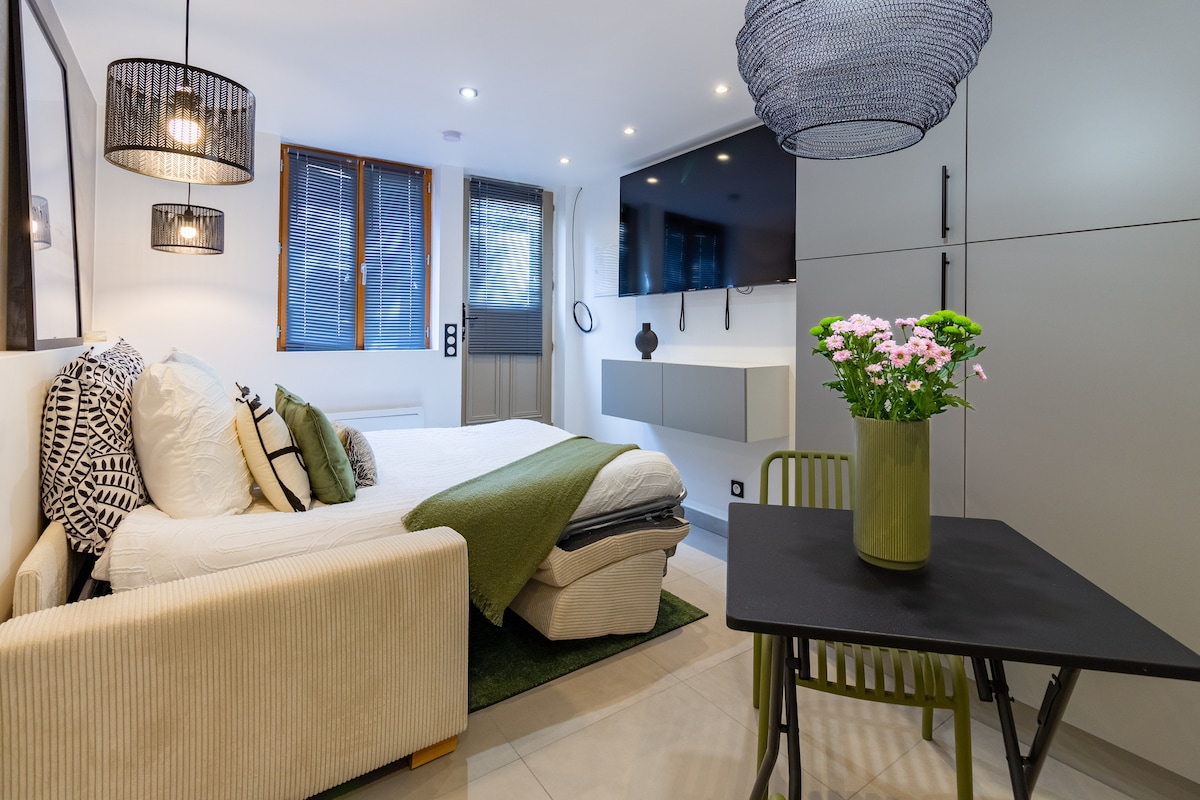 Зеленая мастерская, оазис спокойствия, где современность и природа идеально гармонируют. ✅ Собственный бассейн Balneo 🛁32 с гидромассажем и светотерапией для полного расслабления после напряженного дня. ✅ Стиль джапанди🍃: зеленый потолок и стена для успокаивающей атмосферы. ✅ Усовершенствованная домашняя автоматизация с голосовым управлением 🎙️ для полного контроля и непревзойденного комфорта. ✅ 5 минут пешком до центра города. 🏙️ 🌟 Уникальное сочетание дизайна, оздоровления и технологий! ✨