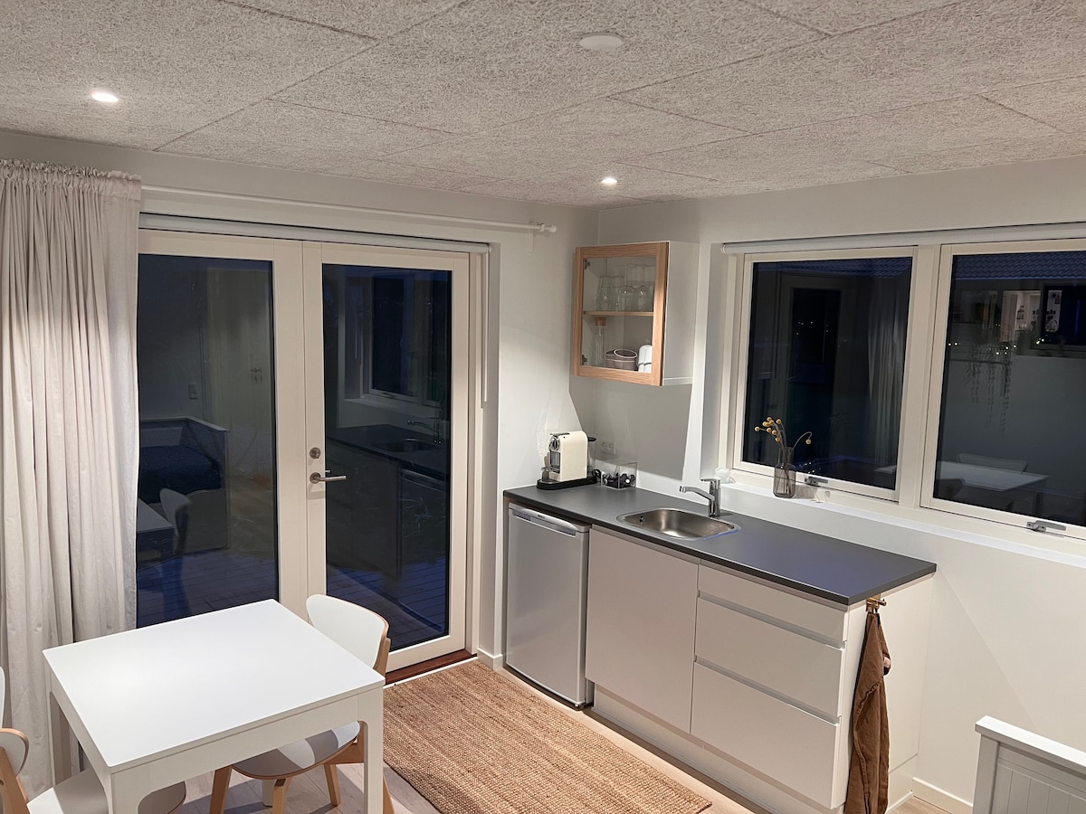 Vi har en dejlig Bed and Breakfast lejlighed med plads til hygge både inde og ude. Du får eget køkken, badeværelse, stue, soveværelse og har I elbil, så kan I lade hos os. Lejligheden har egen indgang ud til en skøn have med mulighed for både underholdning og afslapning. Du finder alt fra havemøbler, hængekøje samt udendørs aktiviteter i form af spil og en trampolin. Der er flere hyggekroge, som meget gerne må benyttes, lige som der er Mexico pejs og grill i haven. Gratis P-plads foran huset.