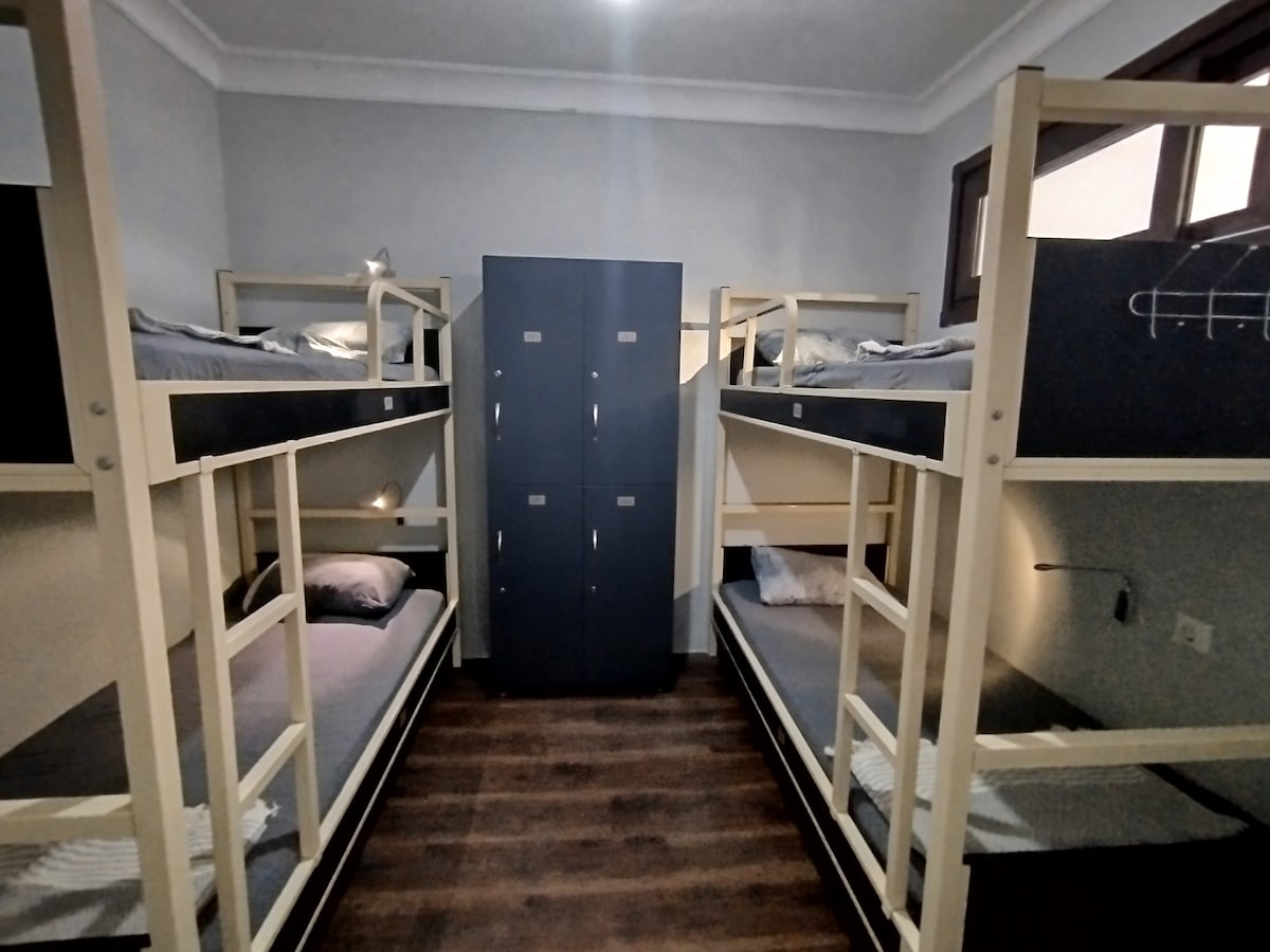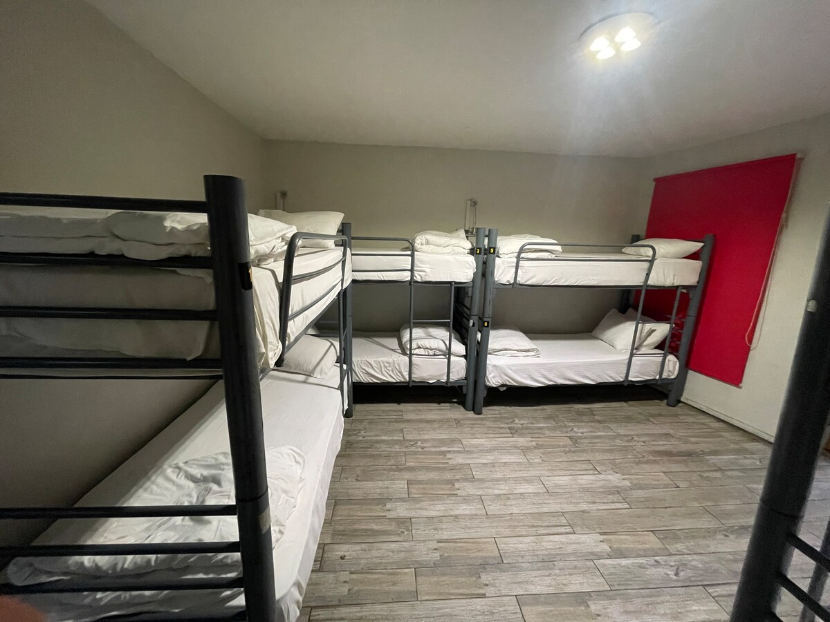 Номер на 6 человек (максимум 6 человек) 6 двухъярусных кроватей (190 см x 90 см) Приложение Размер номера: 12 м2. Разделение занавес на кроватях в общежитии Завтрак, включая свет для чтения Расположенный в подвале с видом на улицу Невозможно забронировать конкретную нижнюю или верхнюю кровать Общая ванная комната 24 часа горячая вода Гибкая система центрального отопления Депозитная ячейка кондиционера Чистые и свежие листы Бесплатный Wi-Fi! Услуга «Просыпаться ». Курение в одеяле