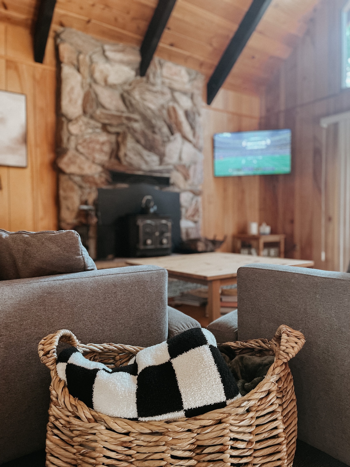 The smell of redwoods, burning woods, hot chocolate. Chirping birds, rustling of deer in the forest. And cozy blankets make a weekend in the woods the best place to be. The Stylish Treetop Cabin in the woods is a design gem among the treetops with rustic décor, fab art, soft cozy linens, relaxing hot tub, sauna & plunge pool. The cozy cabin is well equipped and is perched up in the treetops, close to hiking, dining, skiing/snowboarding, wine tasting, golf, pools and nearby lakes.