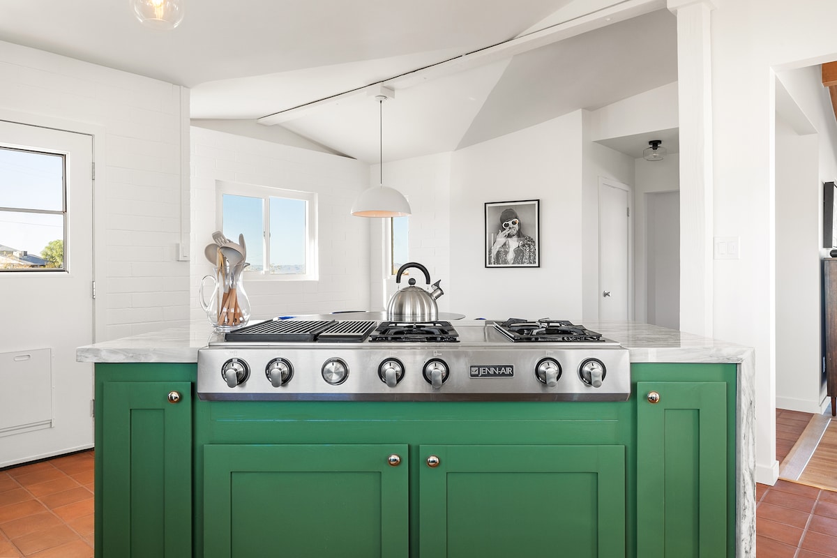 Дом Joshua Tree Wabi Sabi сочетает в себе японскую философию дзен с современным стилем середины века. Из этого спокойного, полностью огороженного пустынного уединенного места площадью 2,5 акра открывается панорамный вид на долину, горы и небо. Насладитесь по-настоящему ухоженным открытым пространством с каменной ванной, душем на открытом воздухе, джакузи, гамаками, барбекю, обеденной зоной на патио, кактусовым садом и костровой ямой. Насладитесь природной красотой высокогорной пустыни, чтобы расслабиться, восстановиться и зарядиться энергией. Всего в 15 минутах езды от национального парка Джошуа-Три.