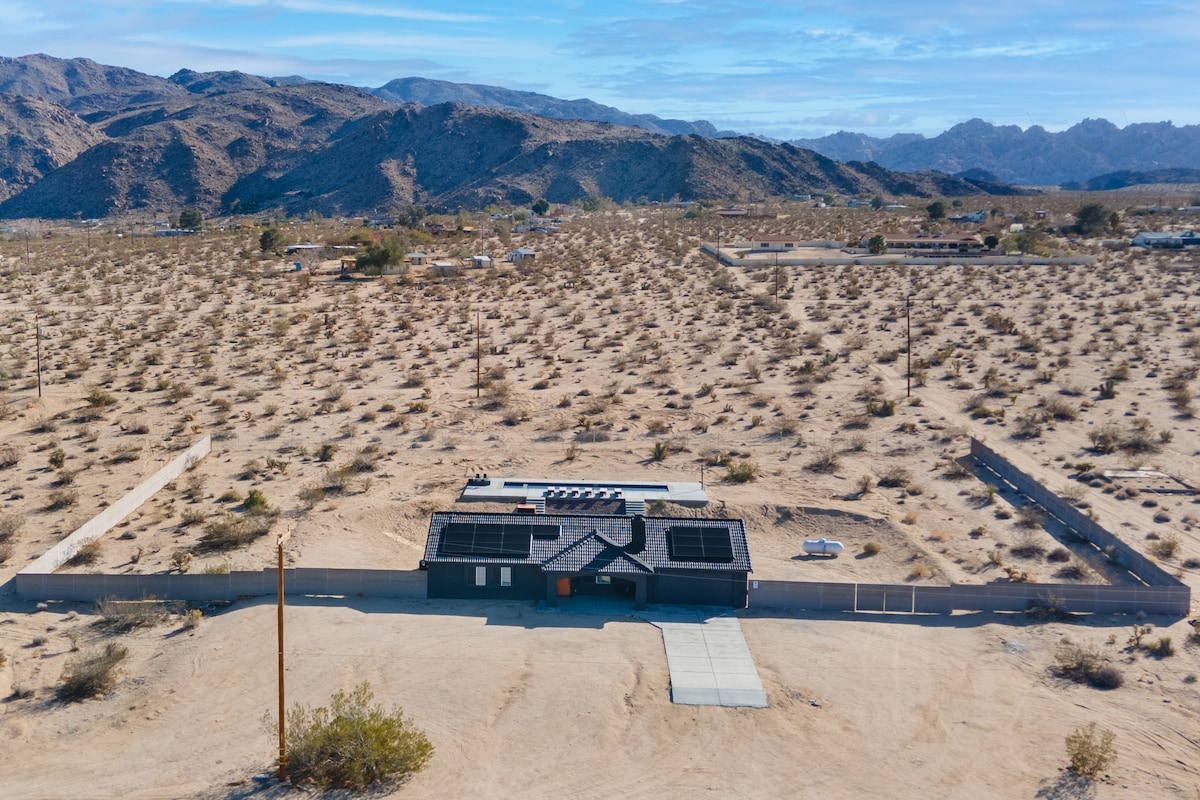 Добро пожаловать в Infinite Stars Retreat — частный современный отель в пустыне с подогреваемым спа-центром, панорамным бассейном, костровой ямой и панорамными видами. Насладитесь игровой комнатой с PS5 и аэрохоккеем, быстрым Wi-Fi и тремя спальнями с кроватями размера King size. Этот стильный дом находится всего в 10 минутах от национального парка Джошуа-Три и идеально подходит для семей, пар и групп, которым нужен комфорт, веселье и незабываемые звездные ночи.