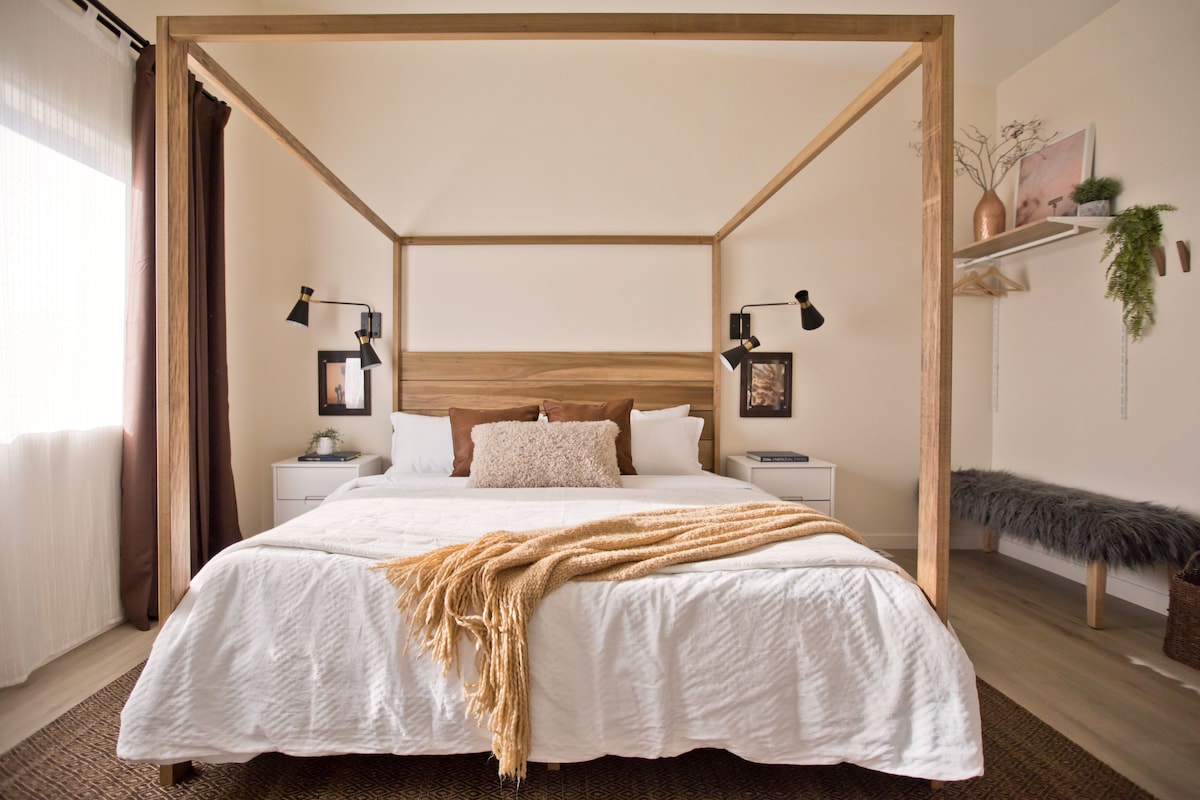 Добро пожаловать в Nebula Nest — совершенно новый (2025) роскошный крошечный дом, расположенный на 2 частных акрах в Джошуа-Три. Предназначено для пар, которые ищут что-то интимное, возвышенное и незабываемое. Темные, мрачные интерьеры прекрасно контрастируют с открытым небом пустыни. Проснитесь на восходе солнца в горах, расслабьтесь у костра на закате и погрузитесь в джакузи под звездами. Романтично, уединенно и идеально подходит для двоих. Всего в 15–20 минутах от национального парка Джошуа-Три.