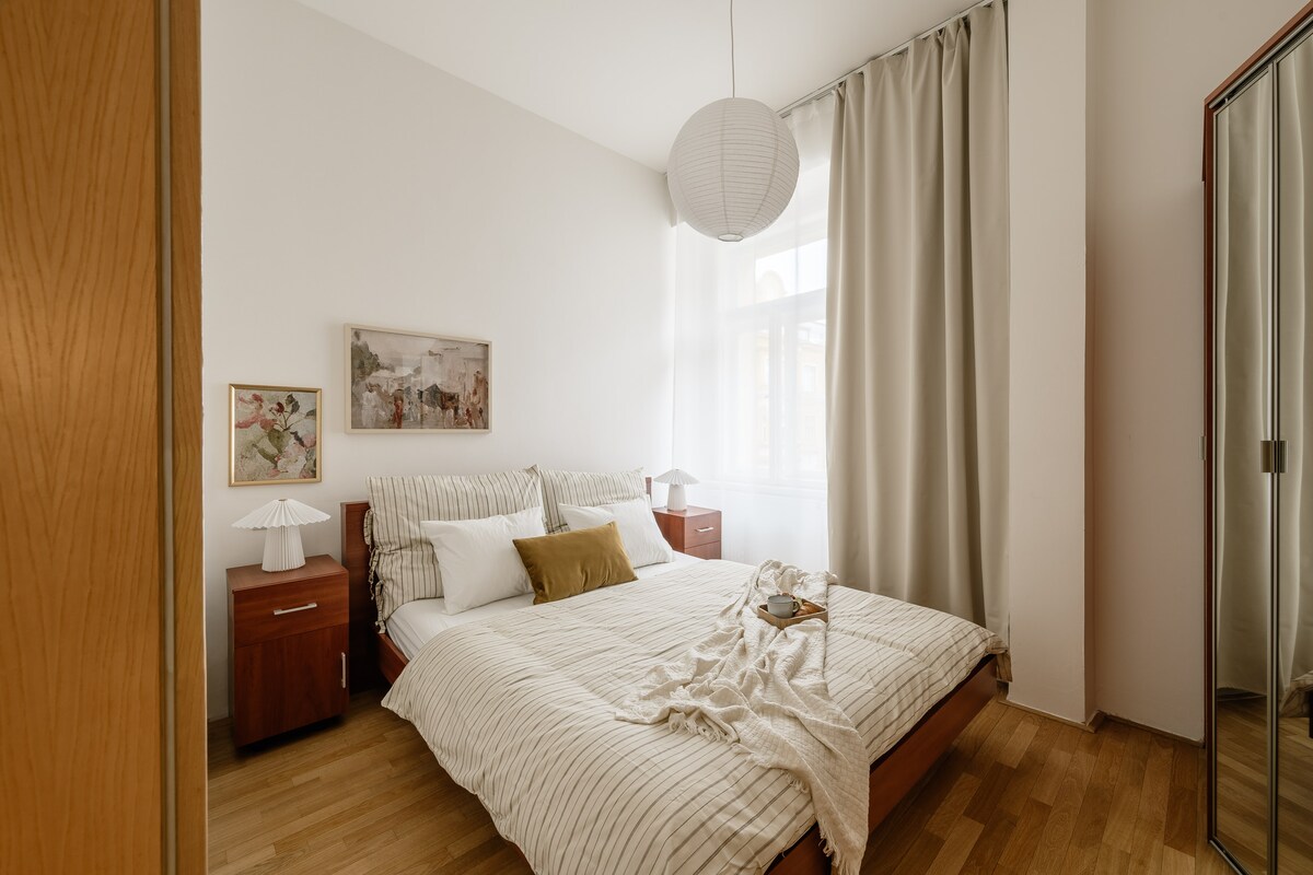 Отрута от мягких гостиничных номеров :) Моя квартира расположена на первом этаже исторического многоквартирного дома, и ее оригинальные особенности, такие как высокие потолки и паркетные полы, сохраняют великолепие пражских резиденций начала XX века. Удобства: кухня (и Nespresso). - Ванна, душ, стиральная машина, кровать 200X160 см. Район сохраняет «местное» очарование, легко добраться до центра, а по соседству есть классный вьетнамский магазин.