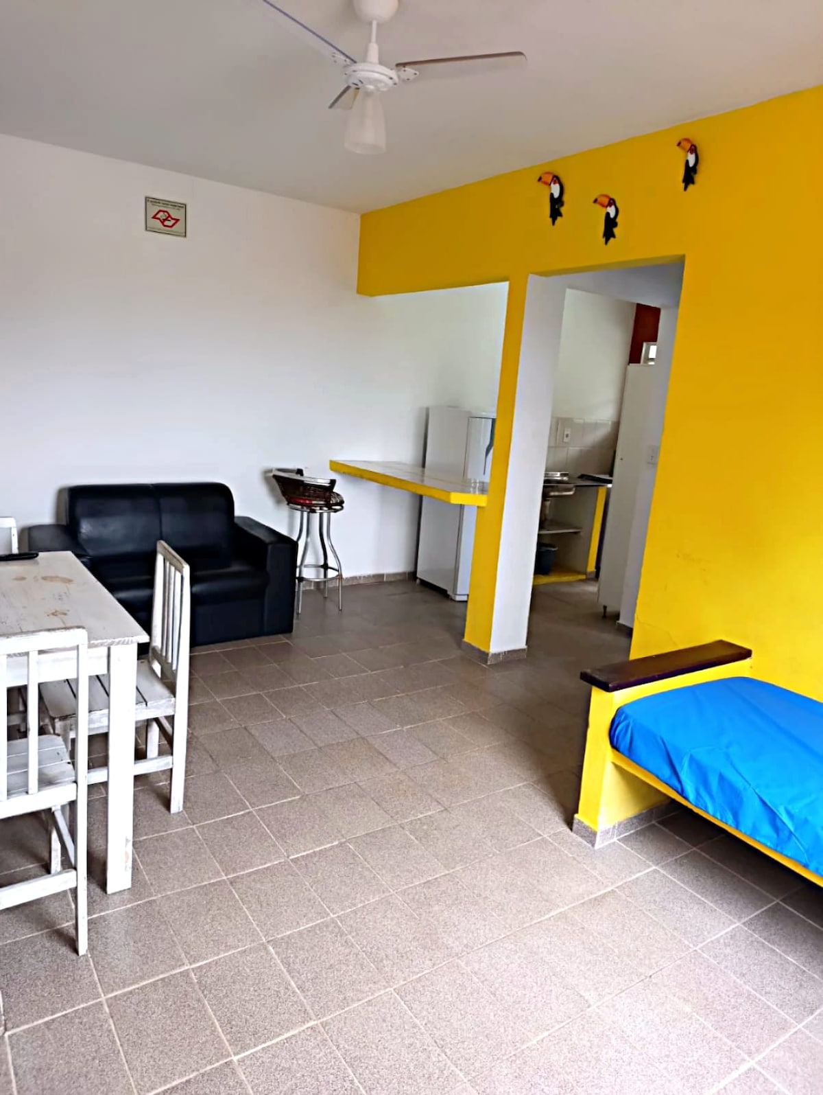 Полностью оборудованная квартира среди спокойствия и природы с лучшим видом на пляж Итамамбука. Это квартира 1. Она состоит из 1 двуспальной кровати и 1 односпального матраса в антресоли, телевизора с телевизором Roku ( Smart TV упрощенно), кондиционера. На кухне есть мини-бар, электрическая плита с индукцией рта, электрическая духовка, а также кастрюли и посуда, необходимые для приготовления пищи. На придомовой территории есть частное барбекю.