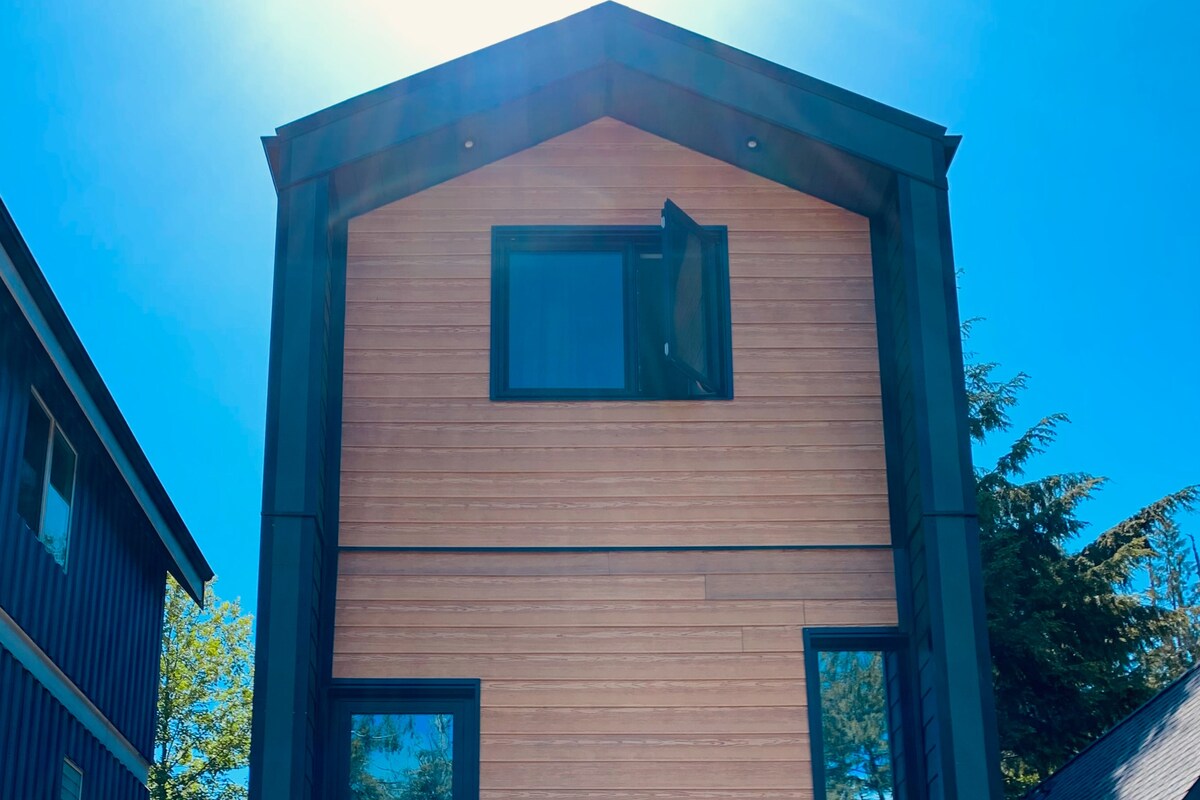 Nestled amidst ancient rainforest, offering views of the Pacific Ocean. These contemporary three-level cabins provide a unique combination of an oceanfront getaway and a serene rainforest retreat. Each floor of these cabins features a private deck, two bedrooms, two bathrooms, a full kitchen, a fireplace, a living area, and a dining area. With direct access to Terrace Beach and The Wild Pacific Trail Lighthouse loop. * Pets allowed: $20 per night, per pet. Max 2 pets. Charged via The Cabins.