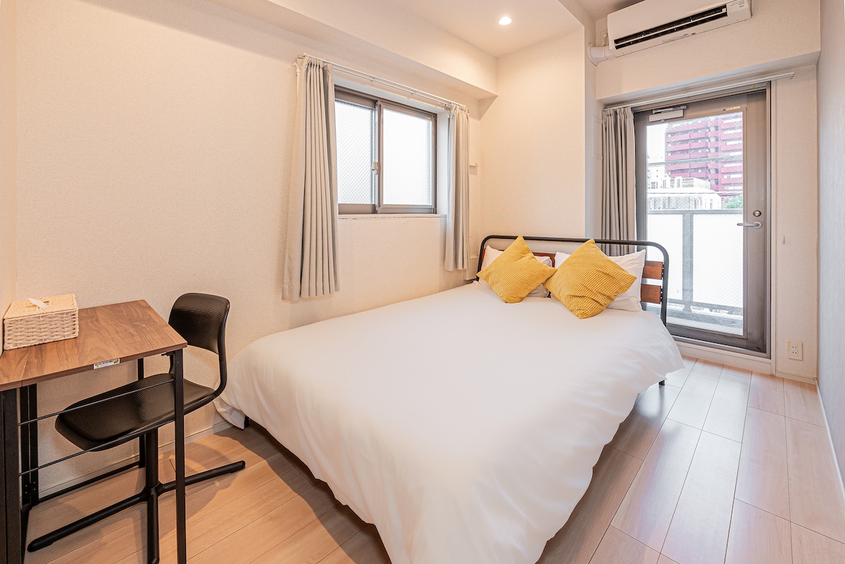 Новая квартира | Храм Асакуса в пешей доступности | 26 м² с балконом, двуспальная кровать | Отдельная ванная комната | Полностью оборудованная бытовая техника | Удобно для путешествий, шопинга и транспорта