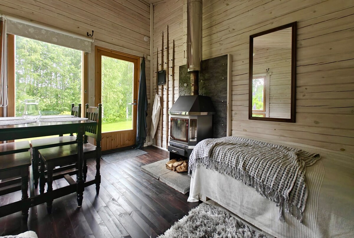 Уютный коттедж в сауне в красивой сельской местности. Спокойное личное пространство, камин, туалет, душ и дровяная сауна (подогрев пола на территории) . К услугам гостей большая терраса и гриль. Отдельно можно арендовать гидромассажную ванну или сауну во дворе. Дополнительные кровати можно забронировать в качестве общего жилья в главном здании. Также есть дополнительные кровати для детей. Во дворе есть место, где можно передвигаться и играть. В общих зонах можно пользоваться кухней и стиральной машиной.
