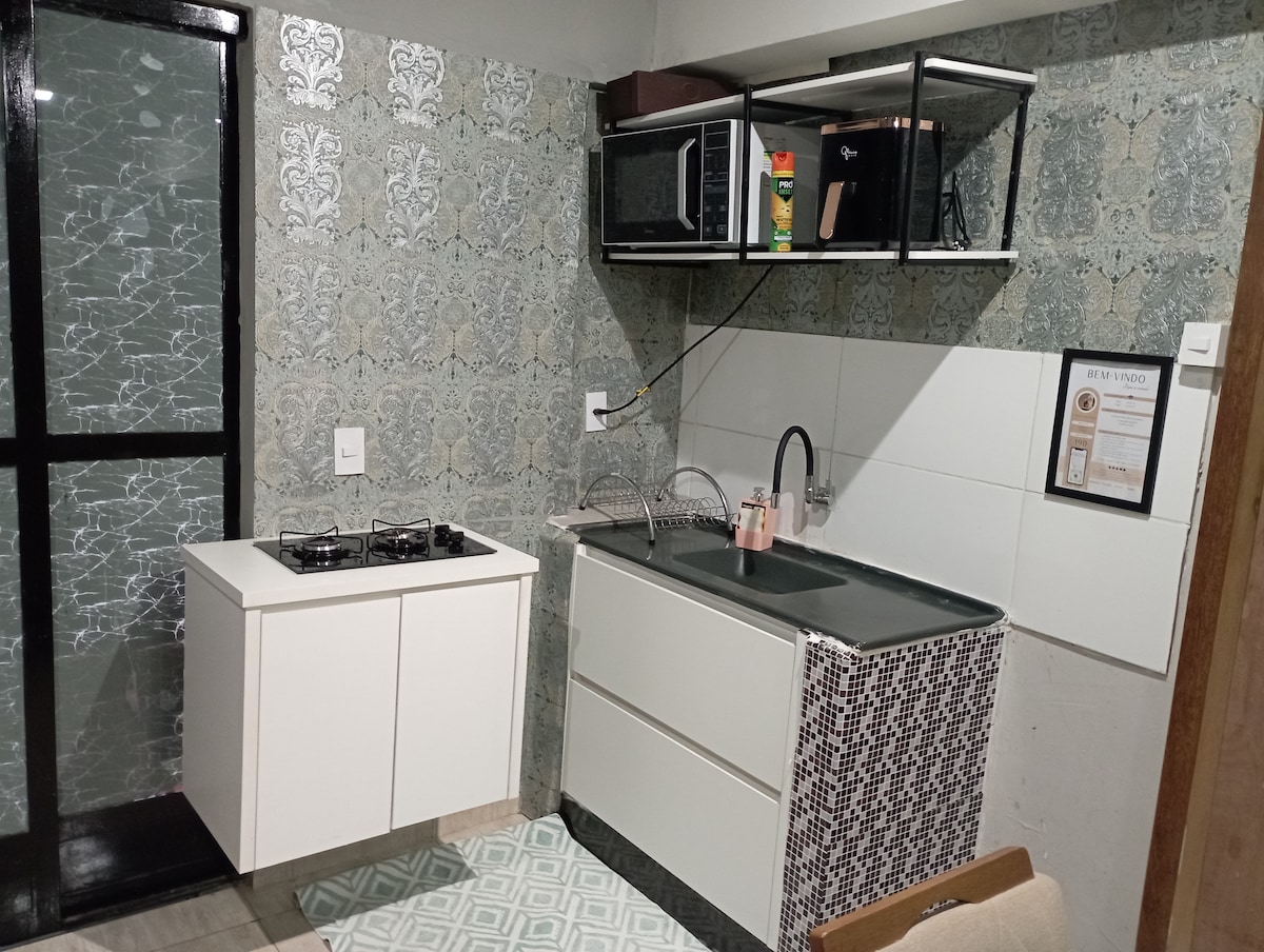 Лофт скромный, но функциональный кондиционер в жаркие дни, оборудованный микроволновыми приборами, надежно кондиционируемым кондиционером, телевизором и Sossêgo.localized в ЦЕНТРЕ рядом со всем, что экономит перемещение в отдаленных местах. Безопасная и знакомая обстановка.