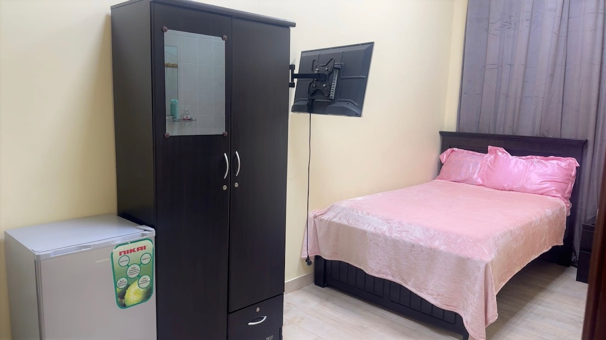 Спокойное жилье в аренду для вашего StayCa с партнером, у нас есть комната-студия с прилегающим туалетом и мини-кухней в центре Абу-Даби, ОАЭ. Что включено: - Кондиционер в Сплите. - Есть Wi-Fi. - Кухня оборудована небольшим холодильником и переносной газовой плитой, микроволновой печью. - Портативная стиральная машина, а также сушилки. - Боковой ящик и шкаф. Жилье доступно, недалеко от автобусной остановки, торгового центра, Baqala's, Resto и мечетей.